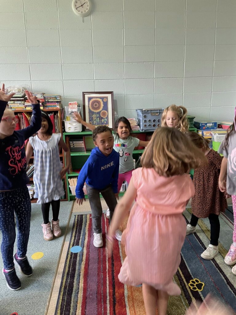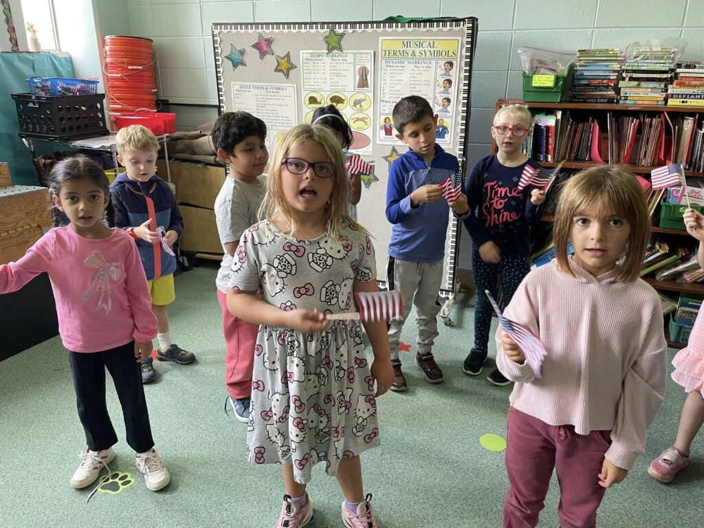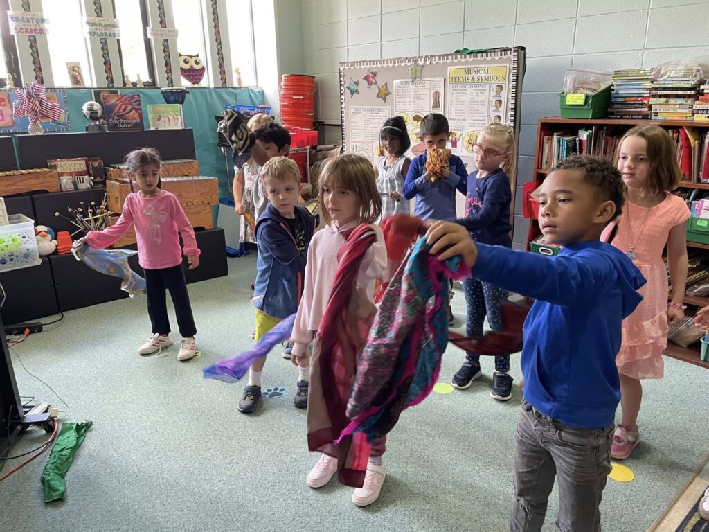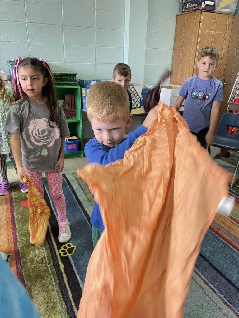 We are learning about the American flag and singing the Star Spangled Banner. Enjoyed a little Earth Wind and Fire while we used scarves to practice writing letters. Pizza Pizza Daddy O is a fun circle game!