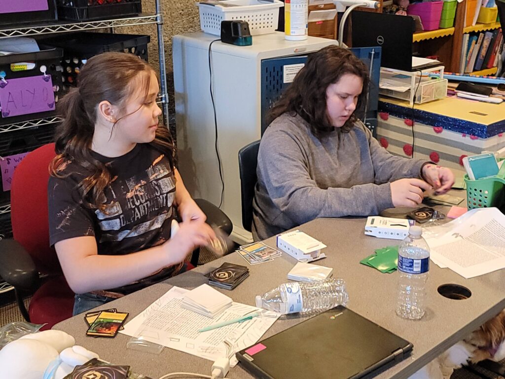 Students had the chance to hand-pick some cool cards from their favorite Disney movies, to put together their very own 60 card deck! Then, they “sleeved up” all their cards for their deck into brand new sleeves & new deck boxes. We finished with another example game between Dylan & myself, seeing how you start a game, what’s involved during your turn, basic strategy, etc.