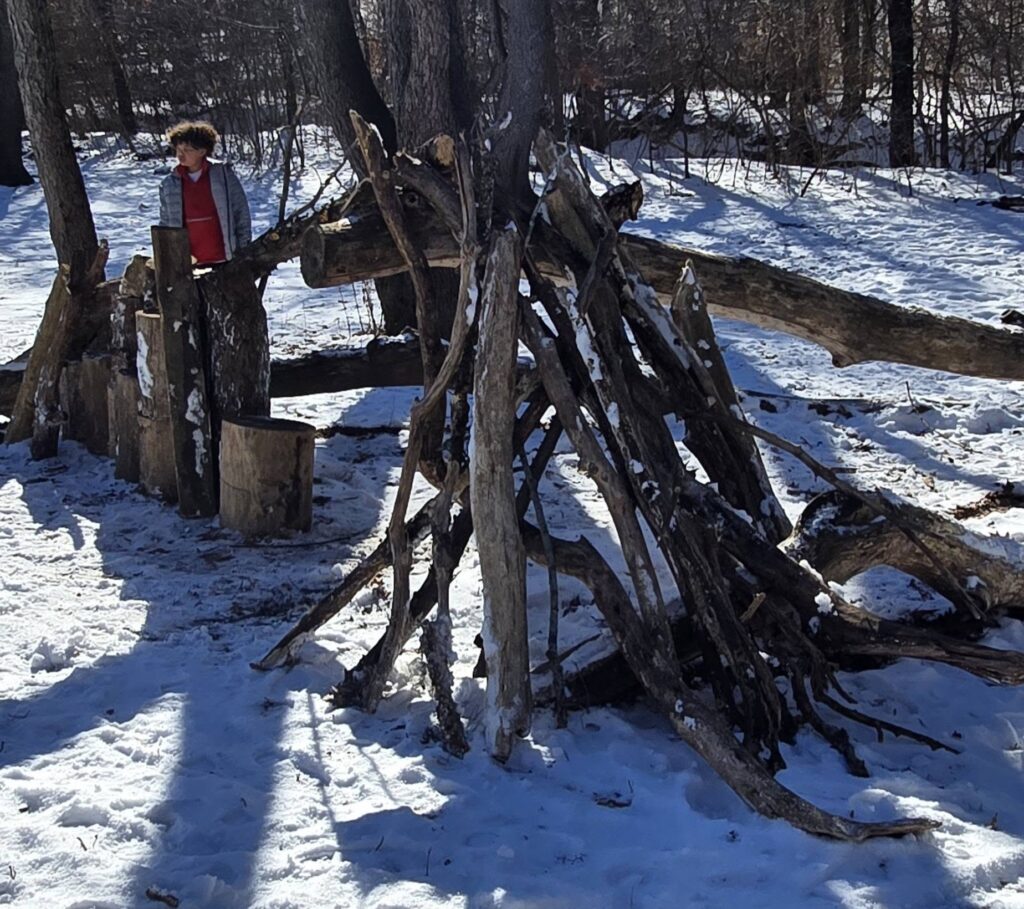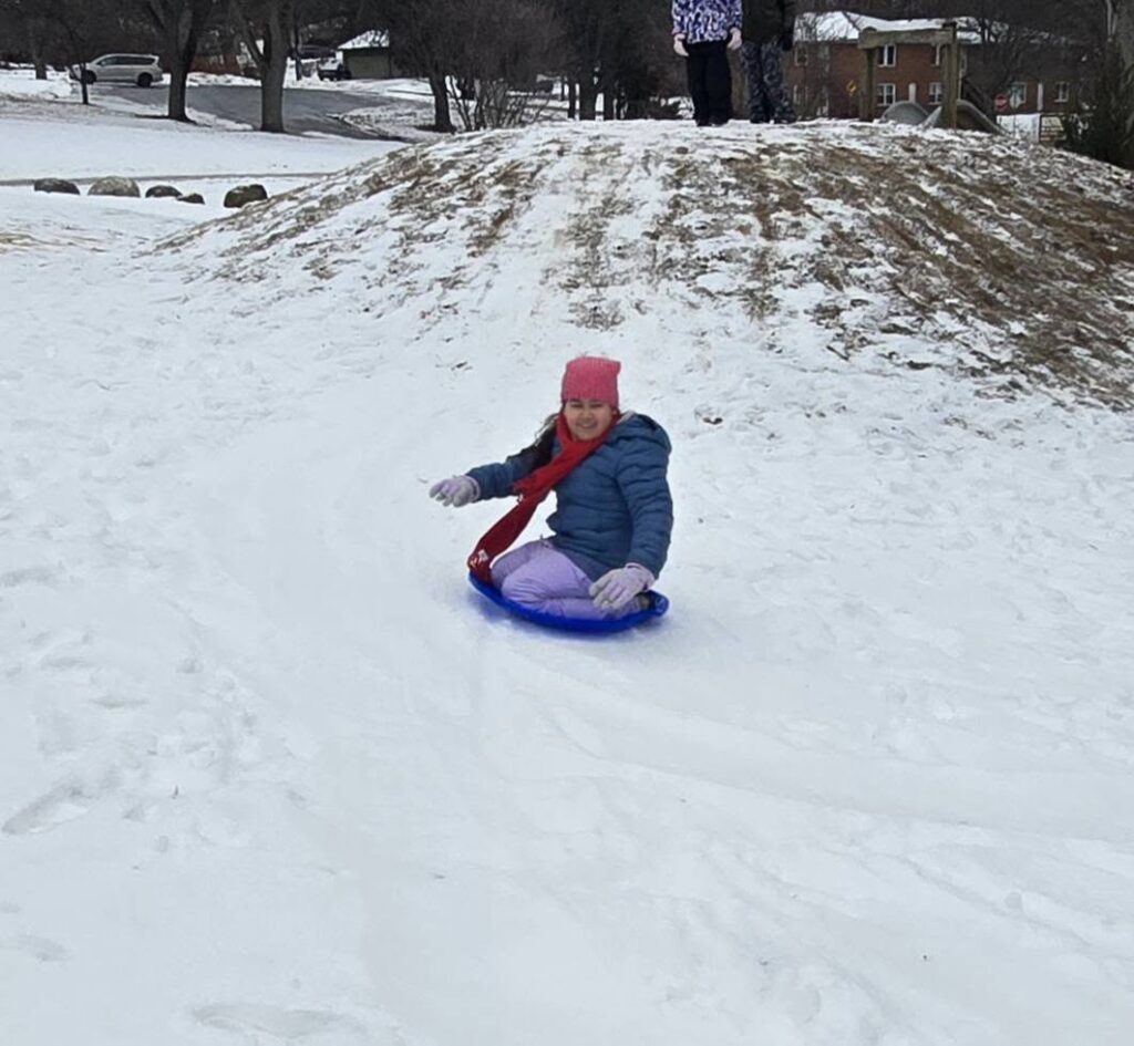 Outdoor Recess had Upper and Intermediate students glad to get back to sledding, tracking animals, and building shelters.