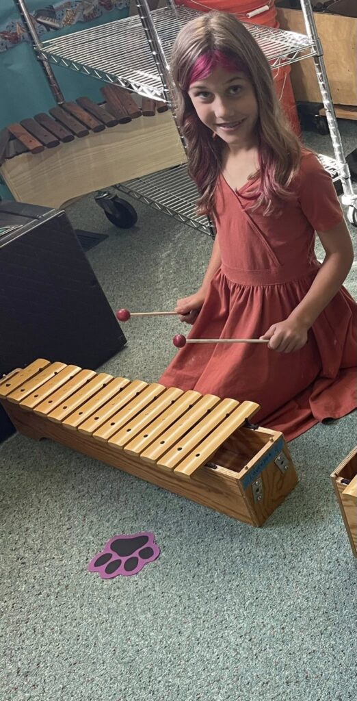 Learning to play an accompaniment to the song, Who Has Seen the Wind, on mallet instruments!