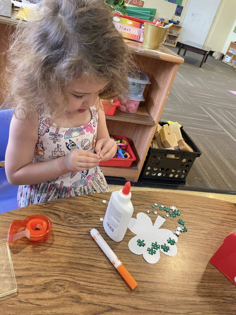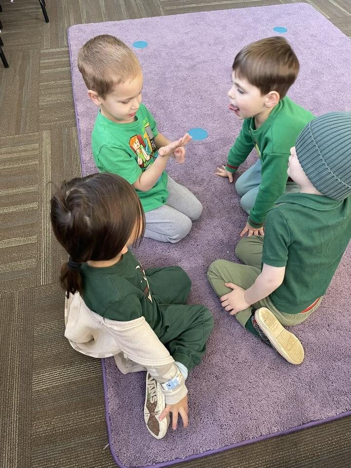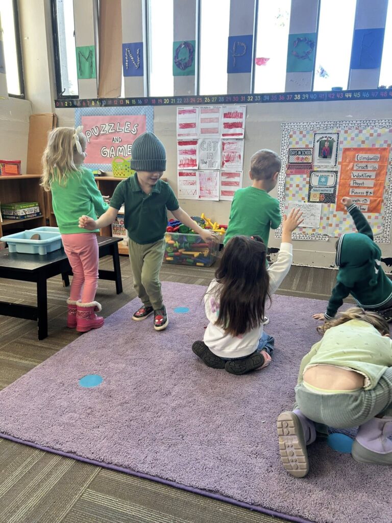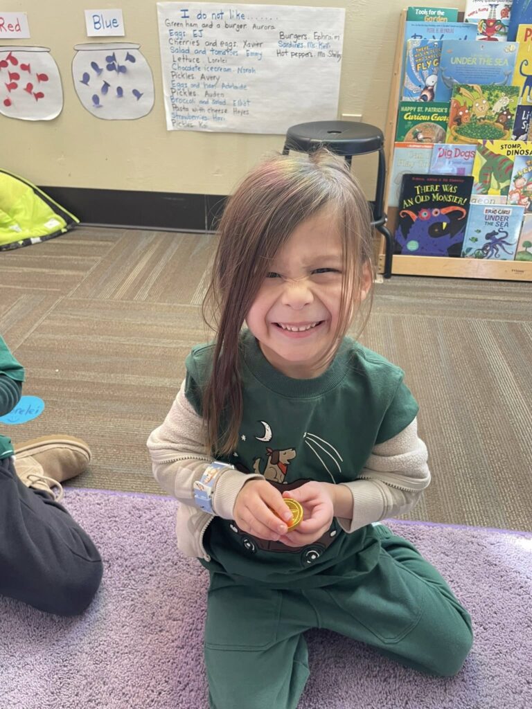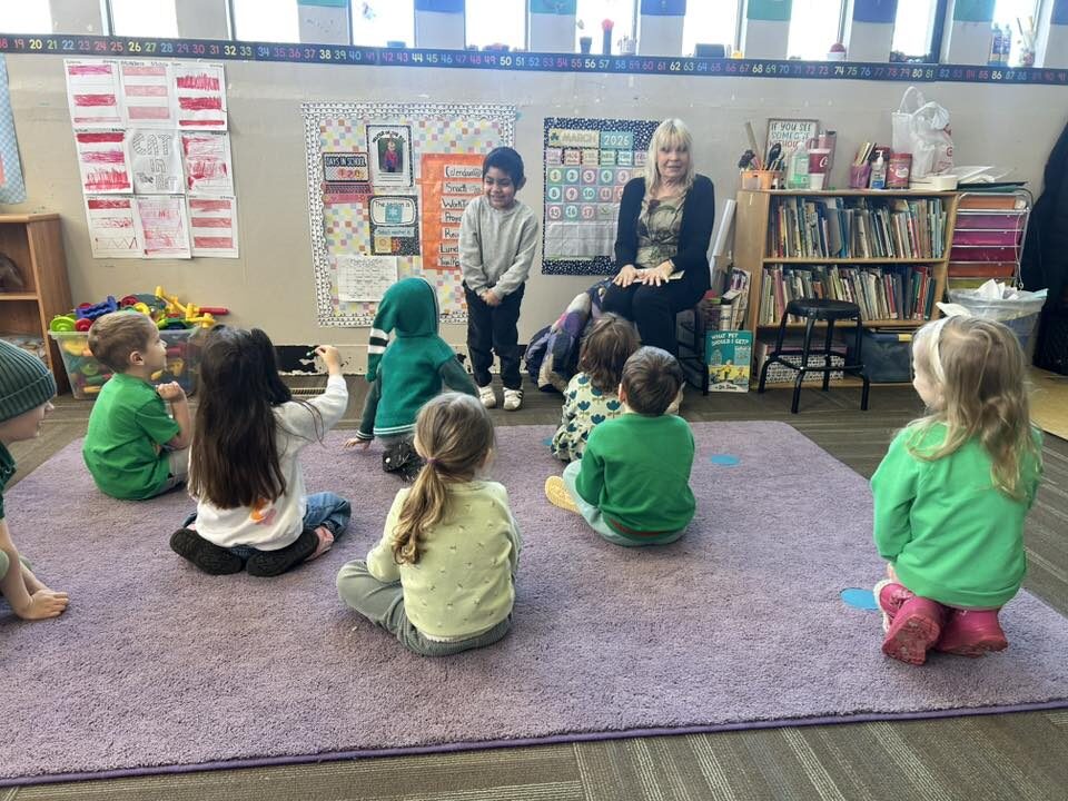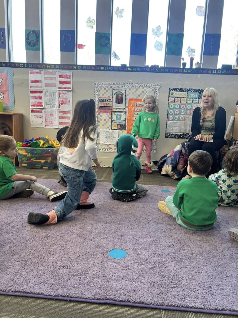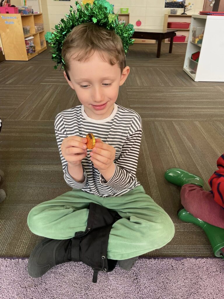 Monday in Drama, Miss GiGi read a story about leprechauns getting into mischief. Then, we played a game where we took turns being a leprechaun, turning our friends into animals with leprechaun magic!