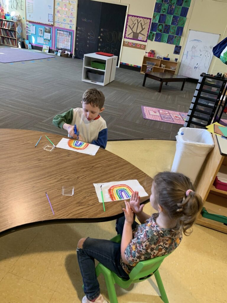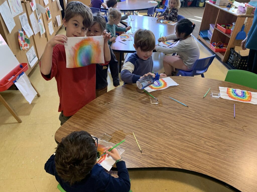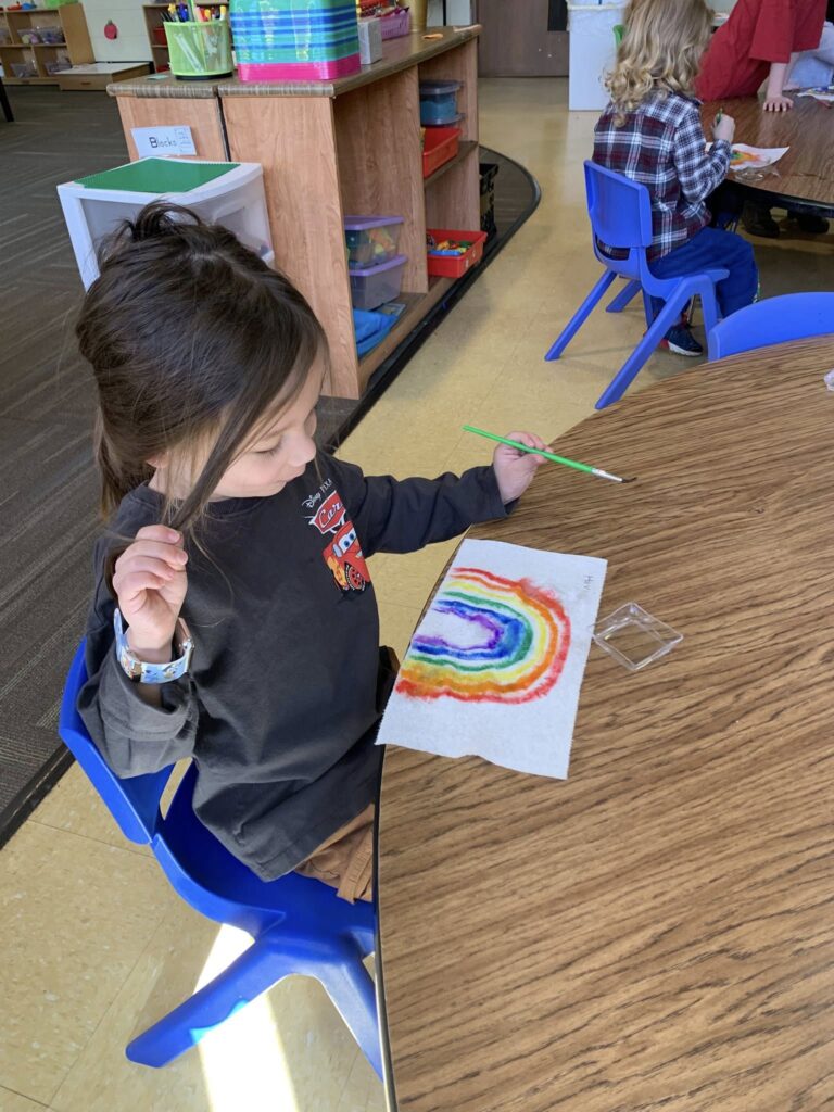 What colors are in the rainbow? What happens when you paint with water on a rainbow?