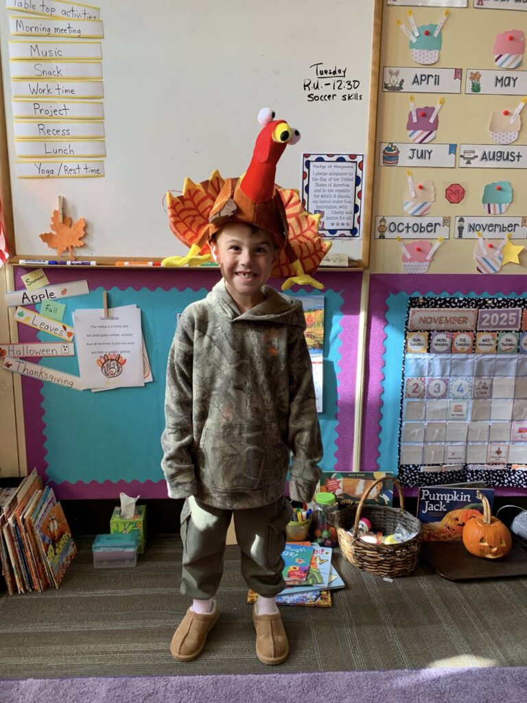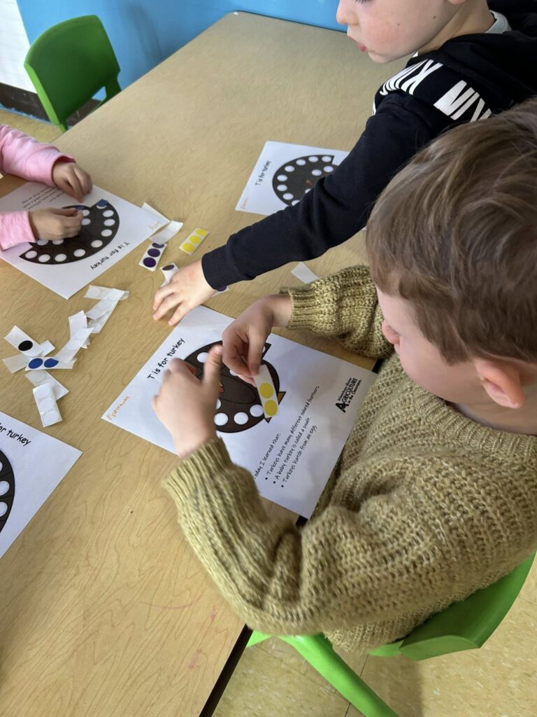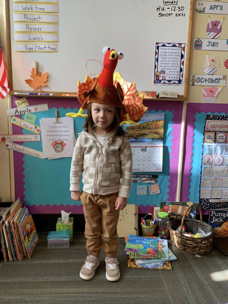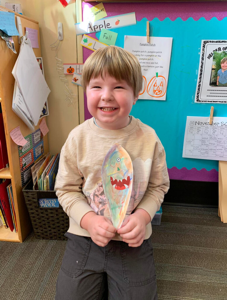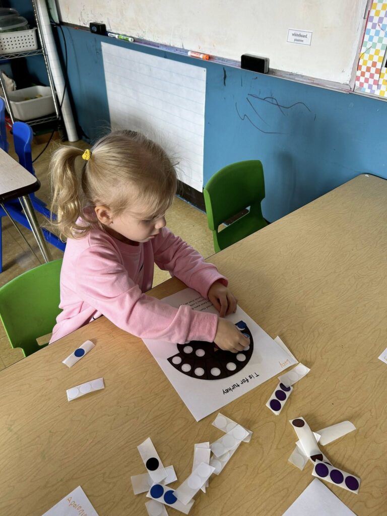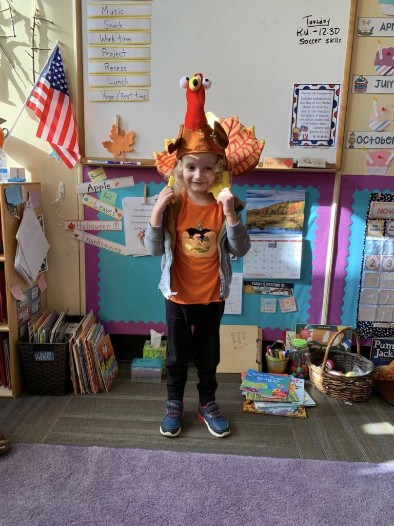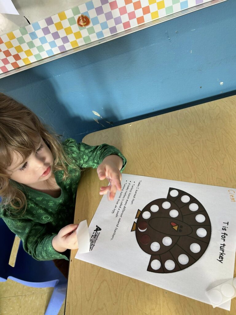 This week in Preschool, Owen shared his colorful feather that he decorated, Elliot shared a laughing turkey feather, and Havi shared a turkey feather created with stickers!