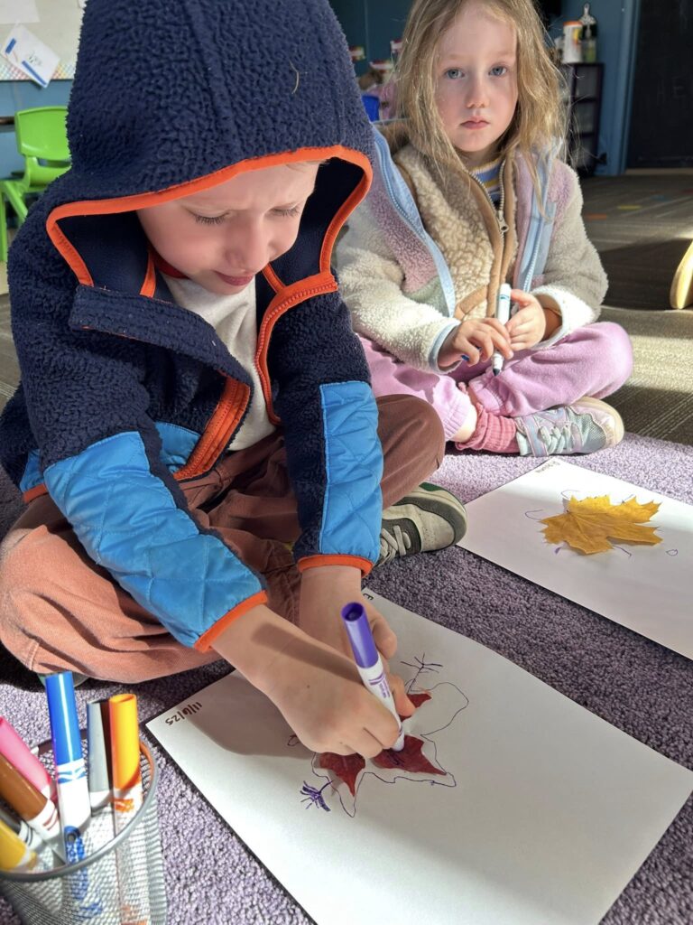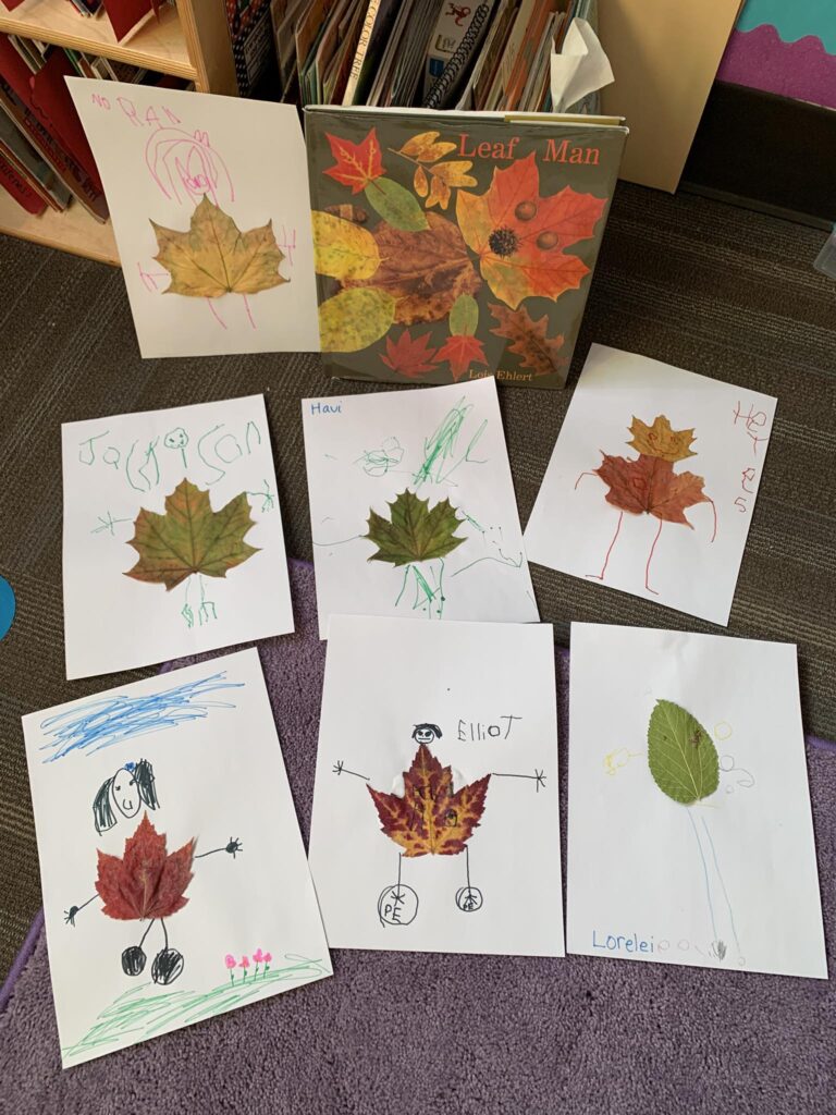 Preschool drawings of leaf people inspired by the story Leaf Man!