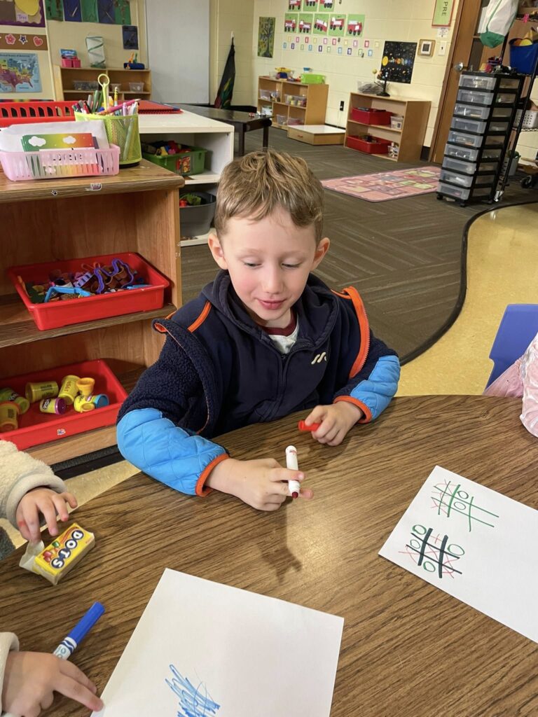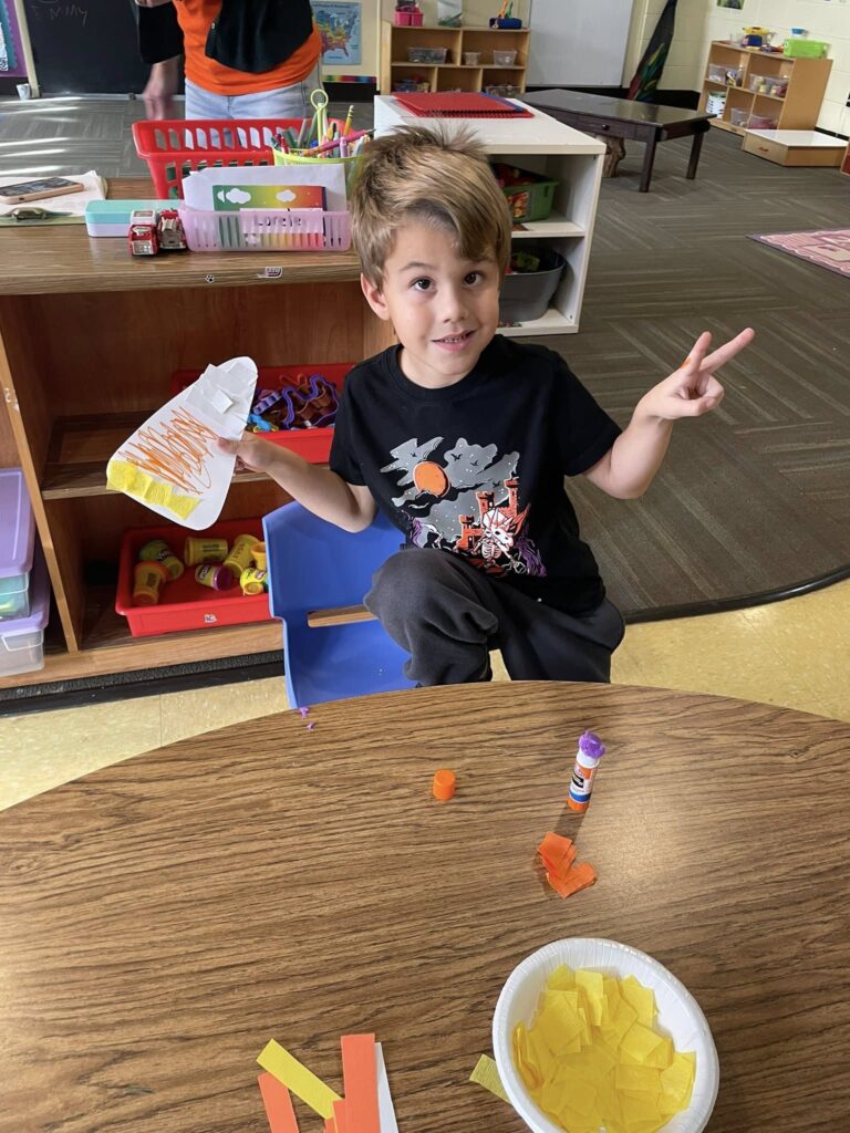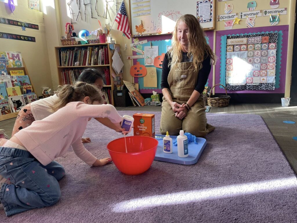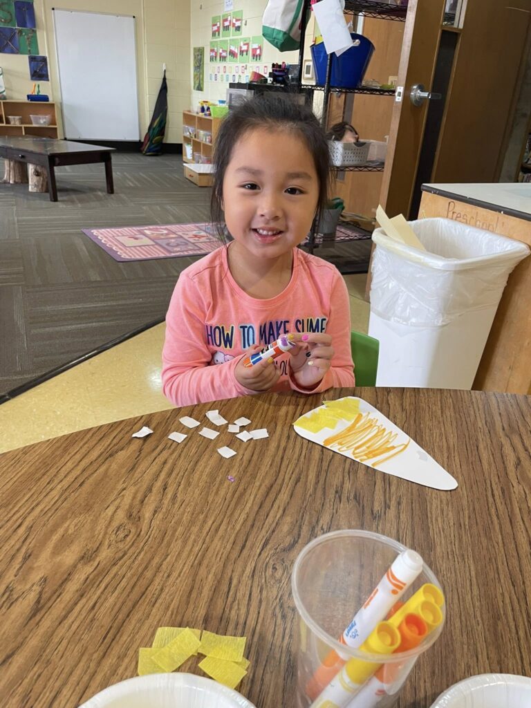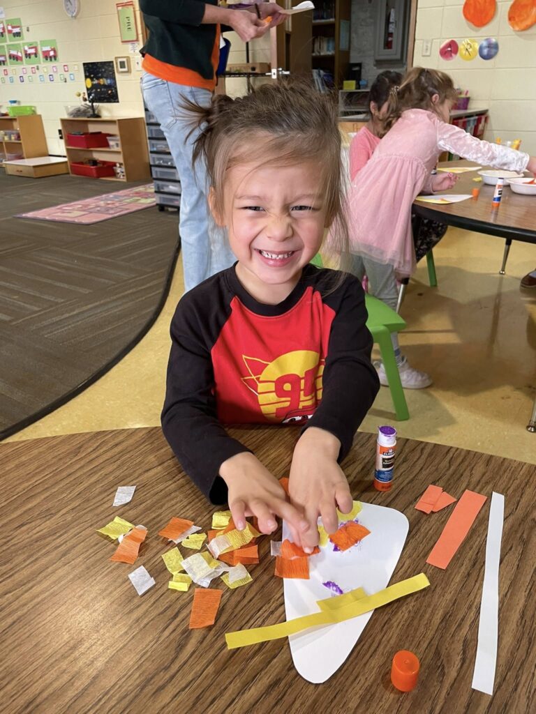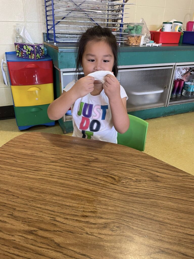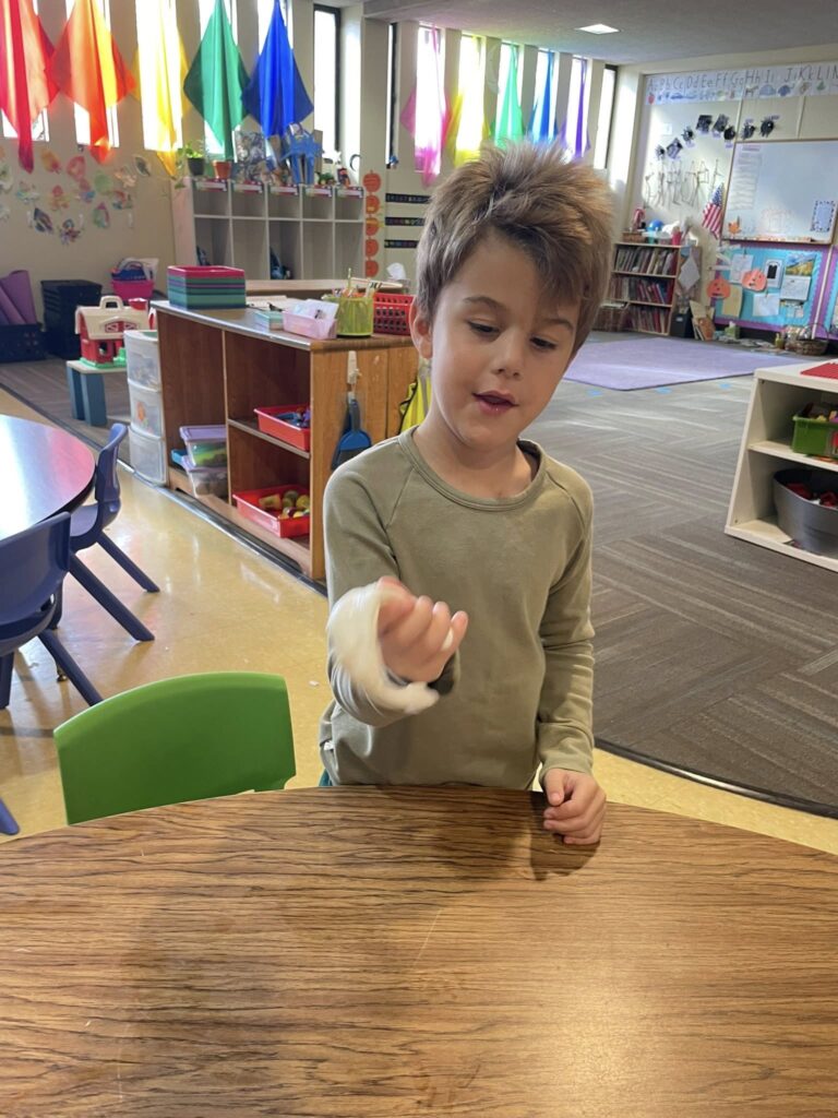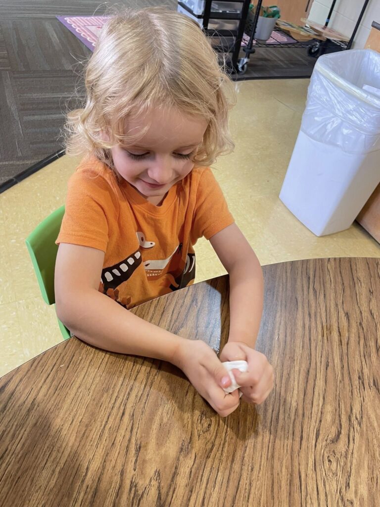 This week, Preschool did a science experiment! We talked about mixing 2 liquids and a solid together to make a chemical reaction, which was slime! Ask your preschooler what they noticed about it and how it felt!