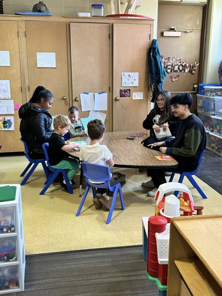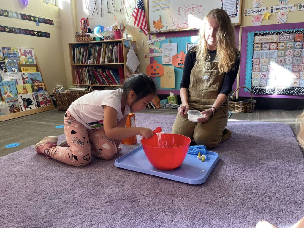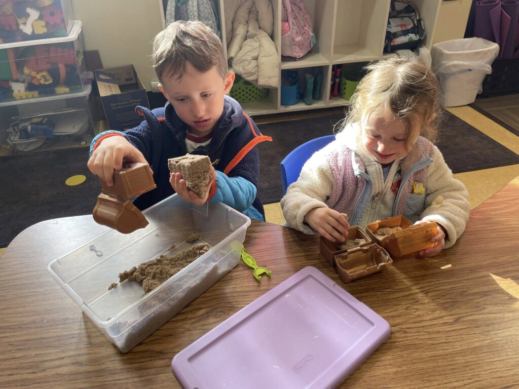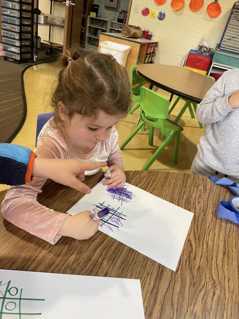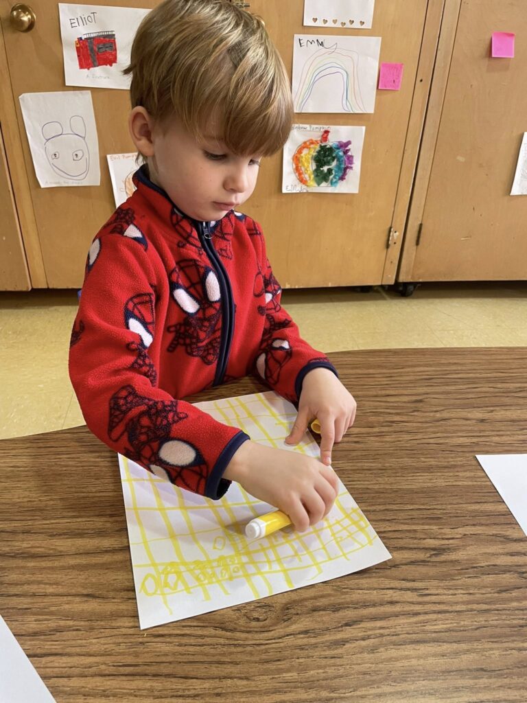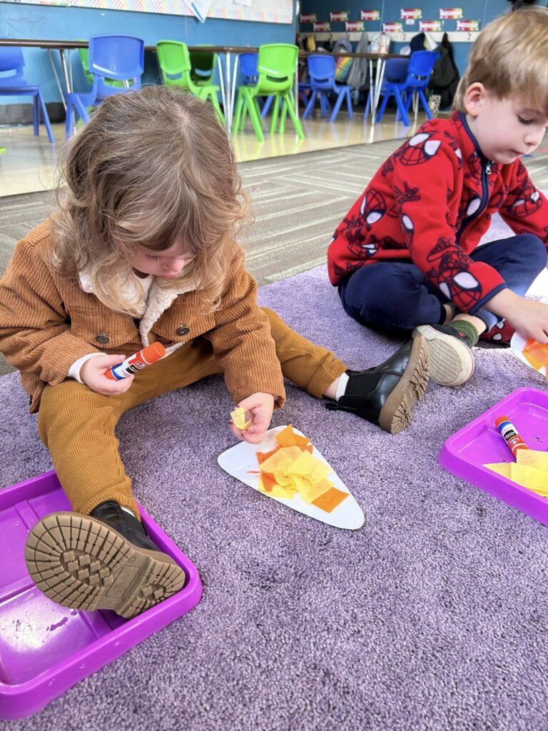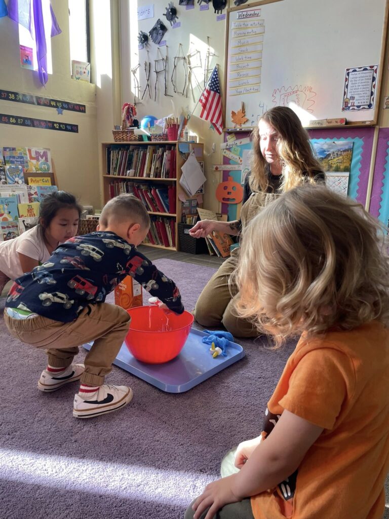 This week, Preschool did a science experiment! We talked about mixing 2 liquids and a solid together to make a chemical reaction, which was slime! Ask your preschooler what they noticed about it and how it felt!