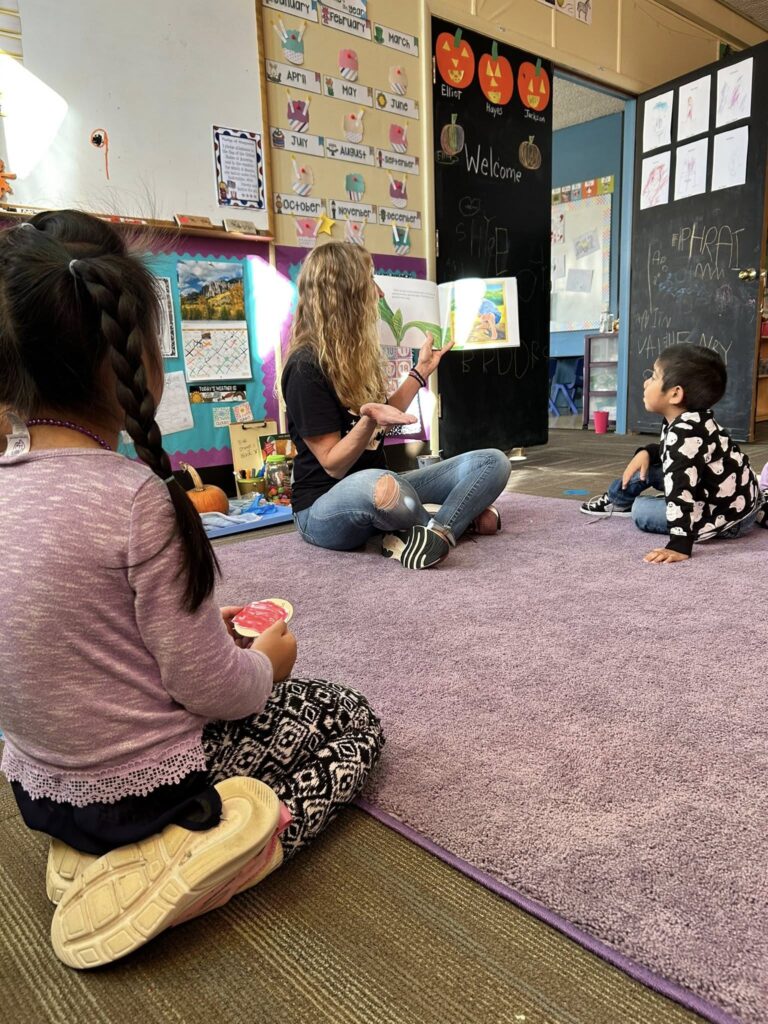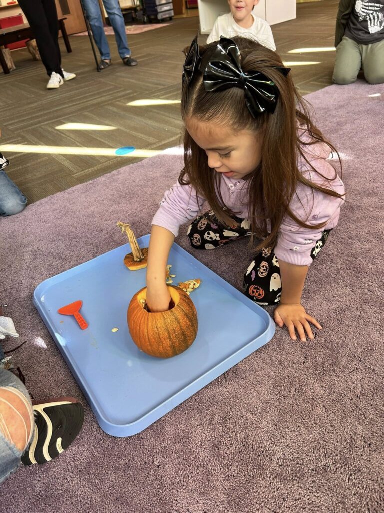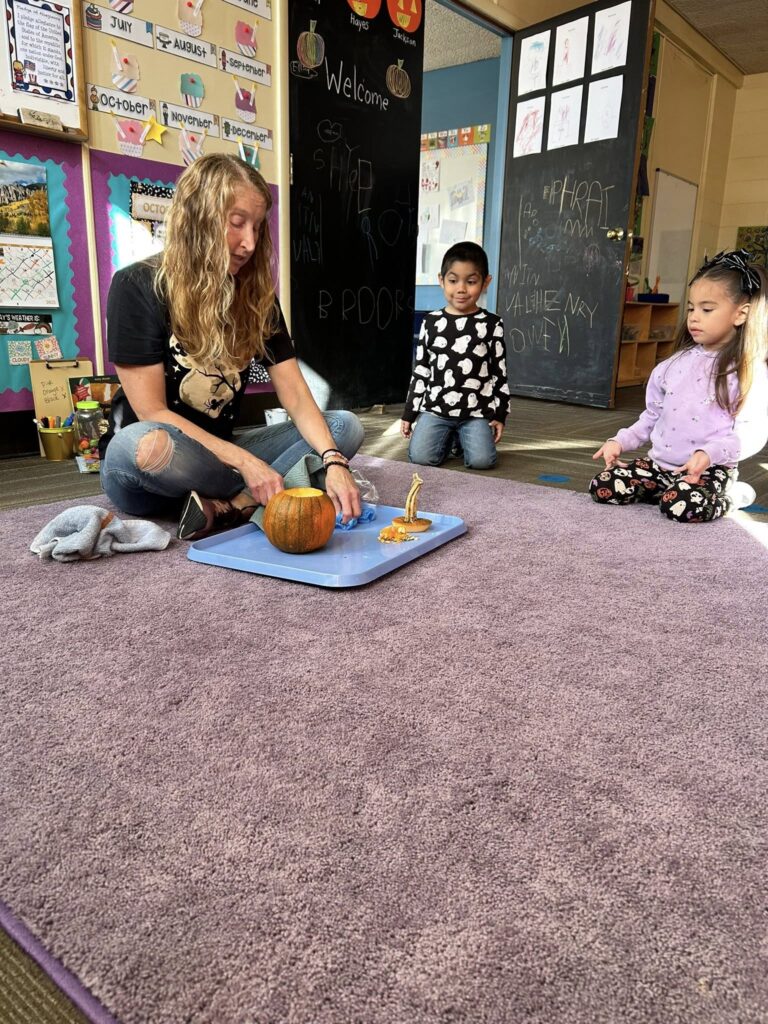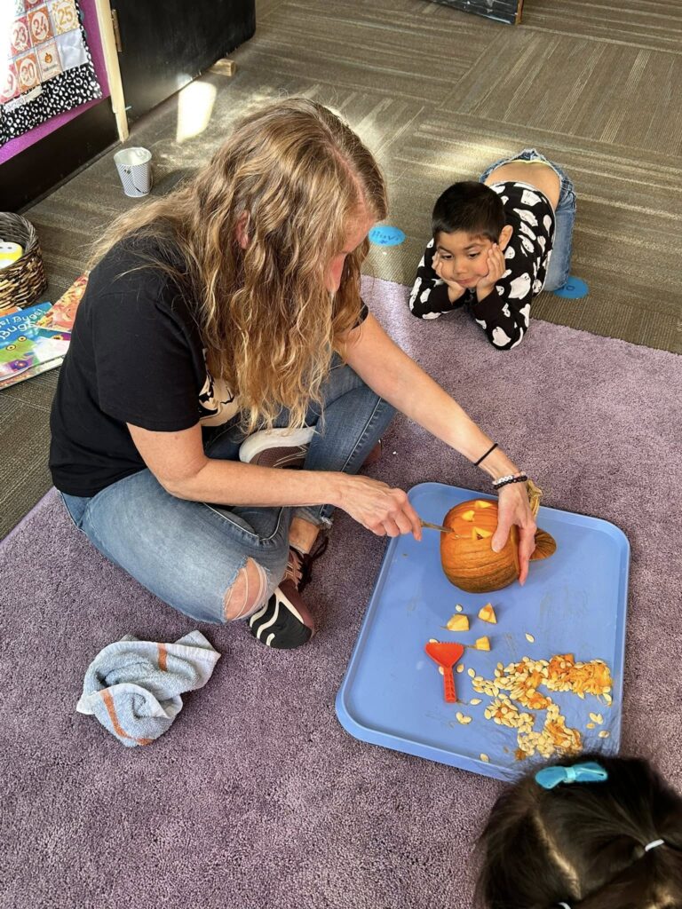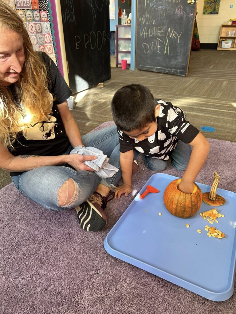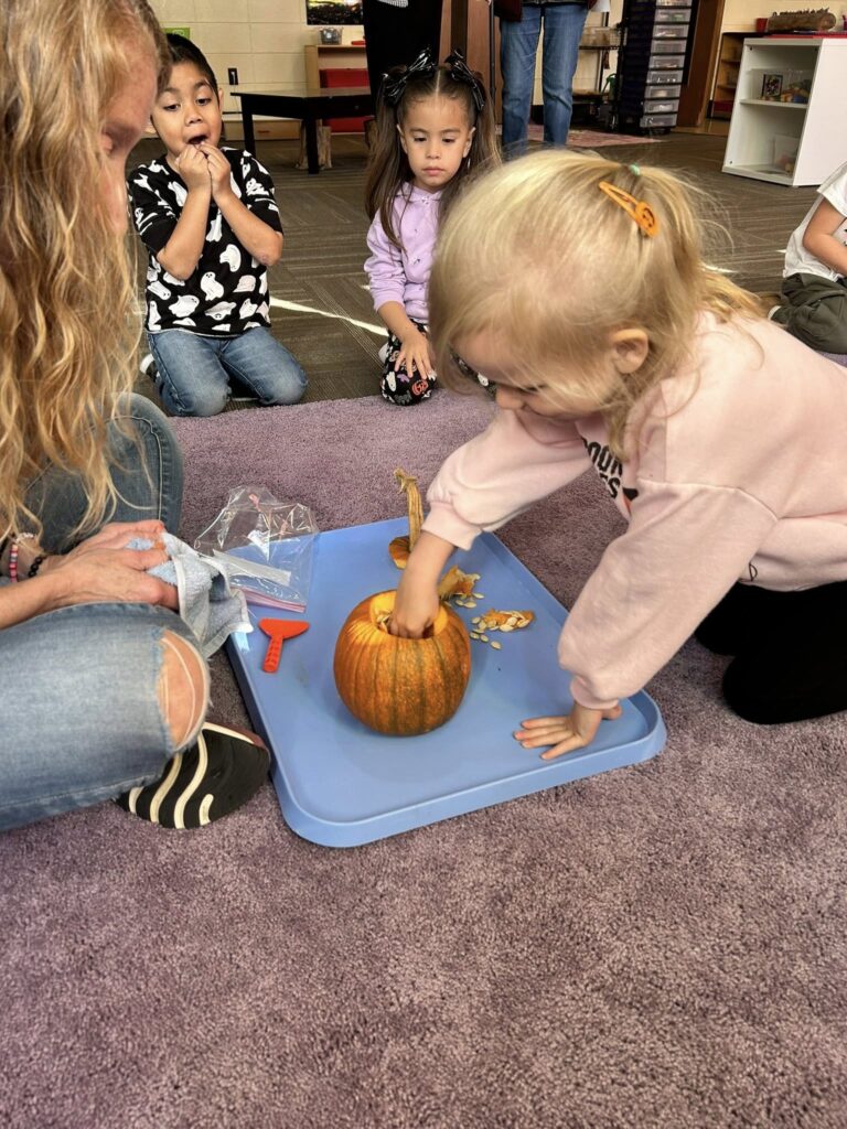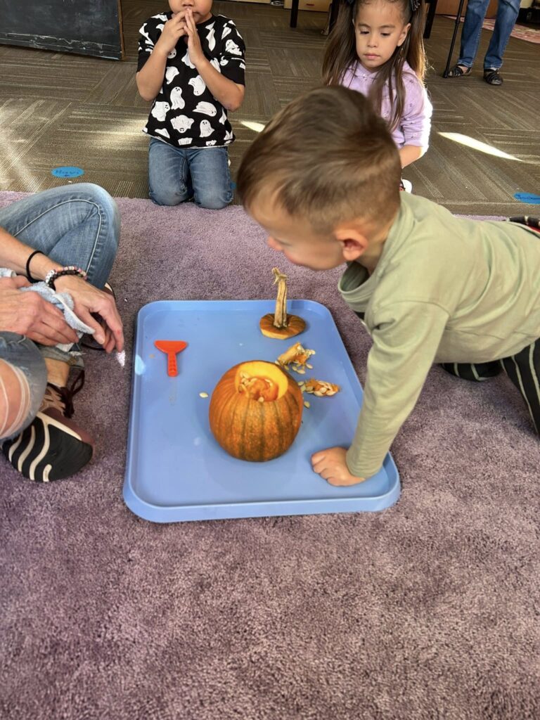 PRE read the book, “Jack’s Pumpkin”, then we watched Ms. Shelley carve a jack-o-lantern!