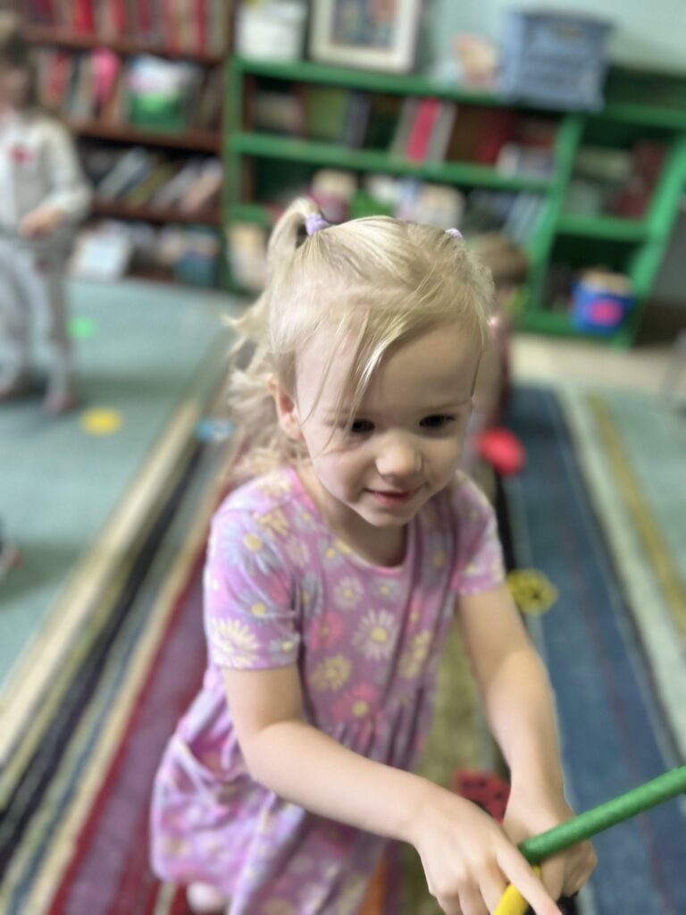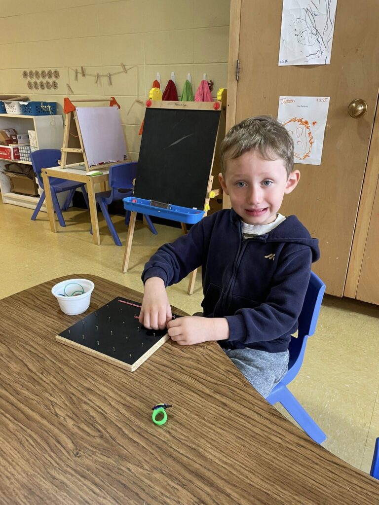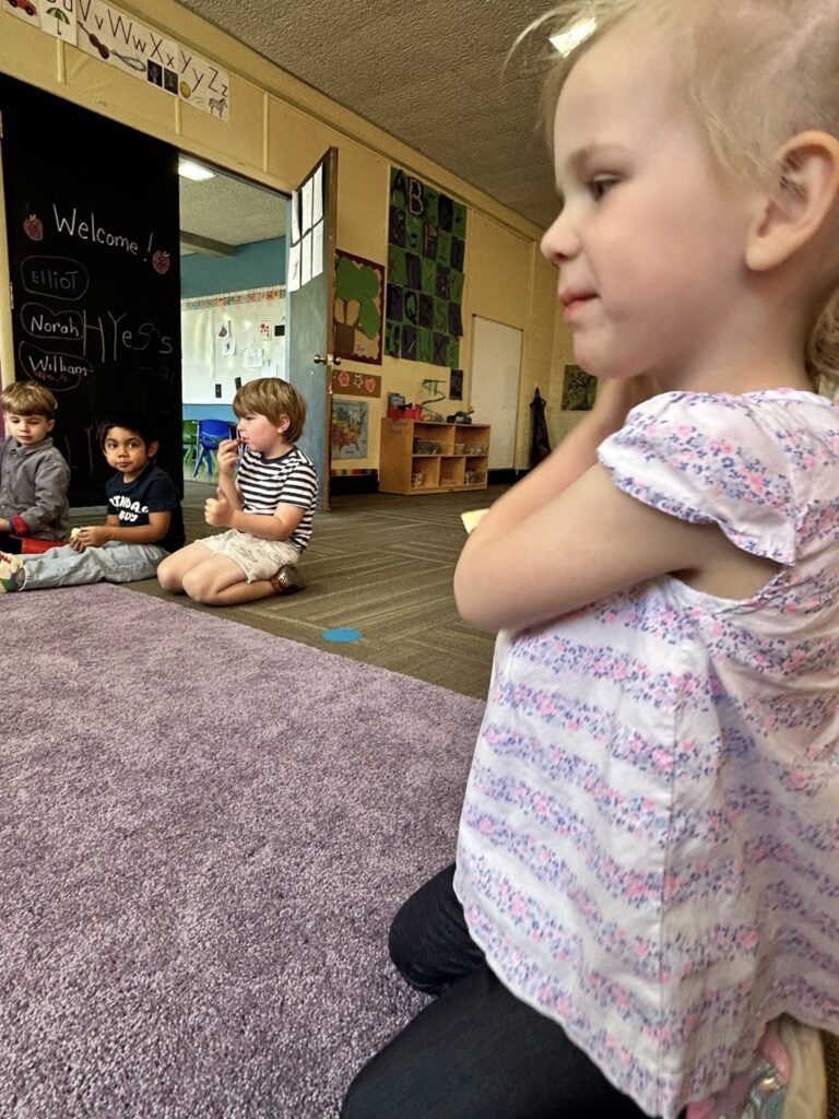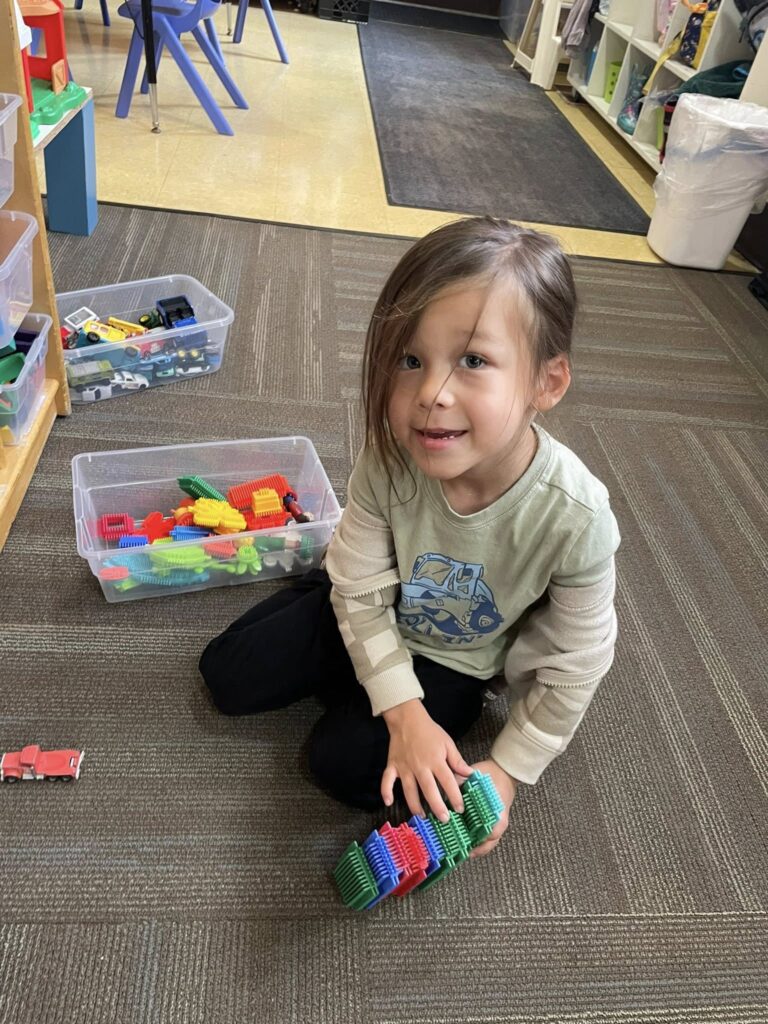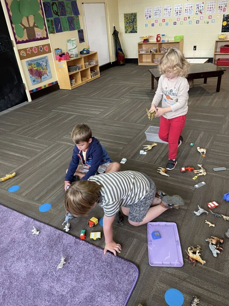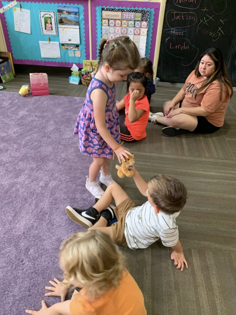 This week in Miss Shelley’s Preschool class: Emmy shared her book about bees, a stuffy, and a special pillow, Nora shared her birdy, Toby, and a family picture, and Elliot shared his police truck, police cube, and train tunnel!