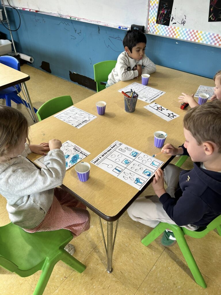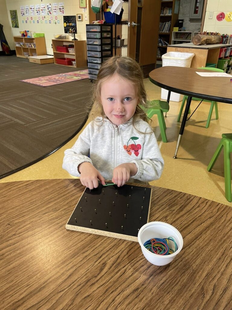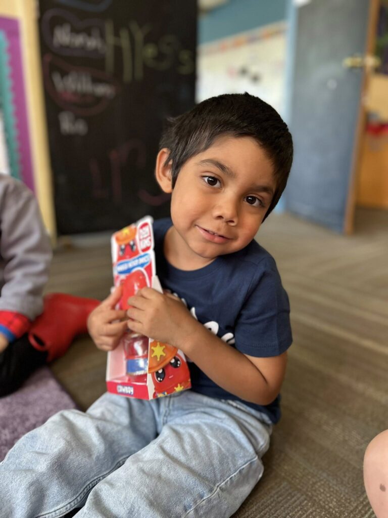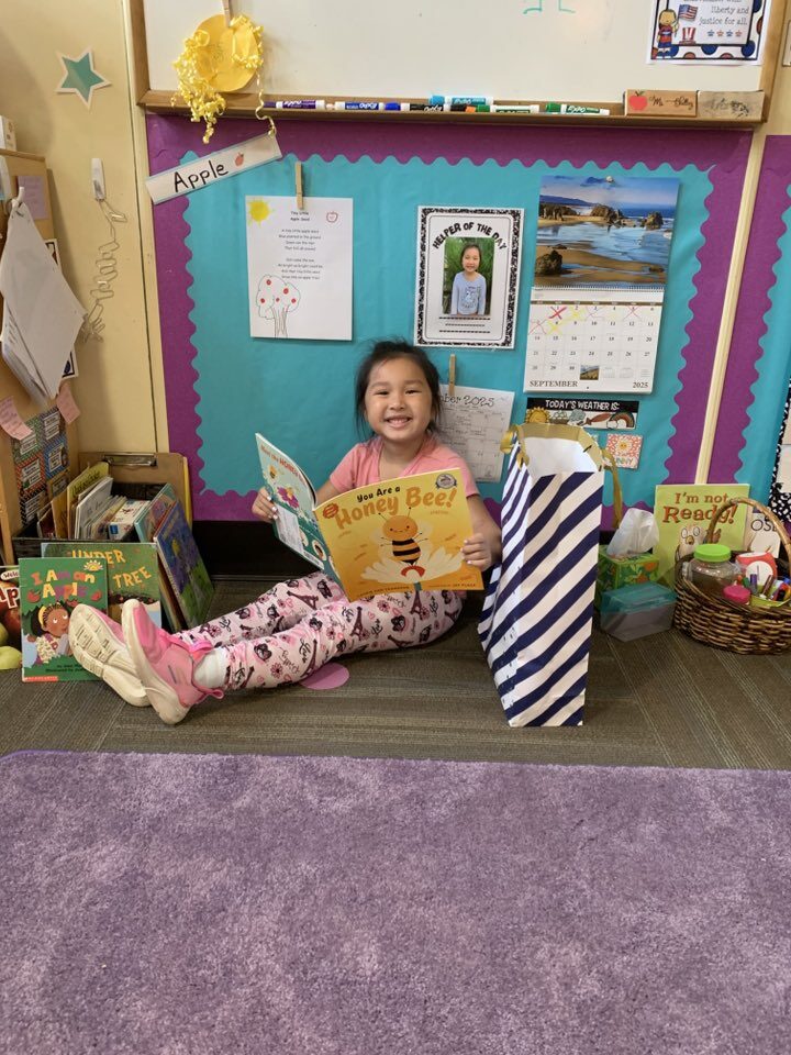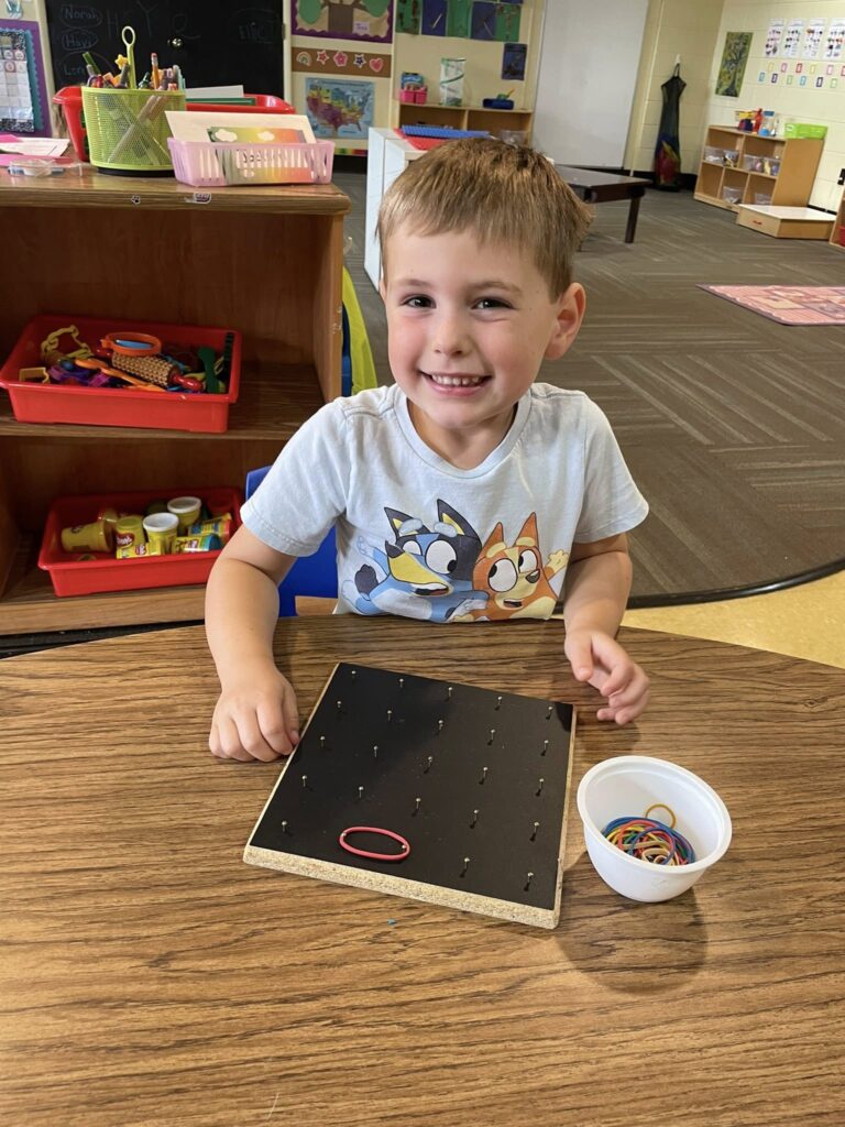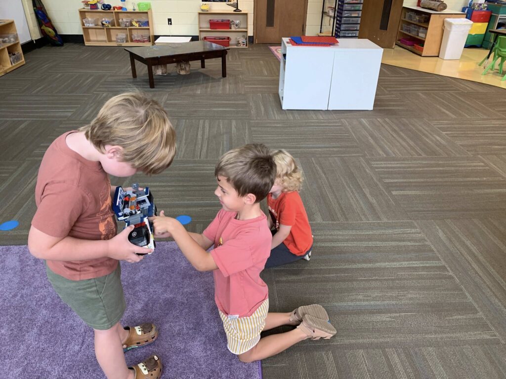 This week in Miss Shelley’s Preschool class: Emmy shared her book about bees, a stuffy, and a special pillow, Nora shared her birdy, Toby, and a family picture, and Elliot shared his police truck, police cube, and train tunnel!