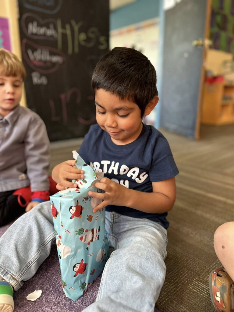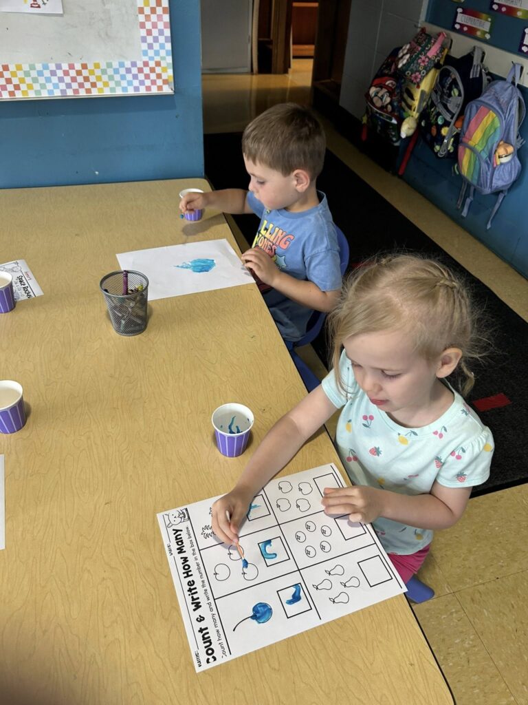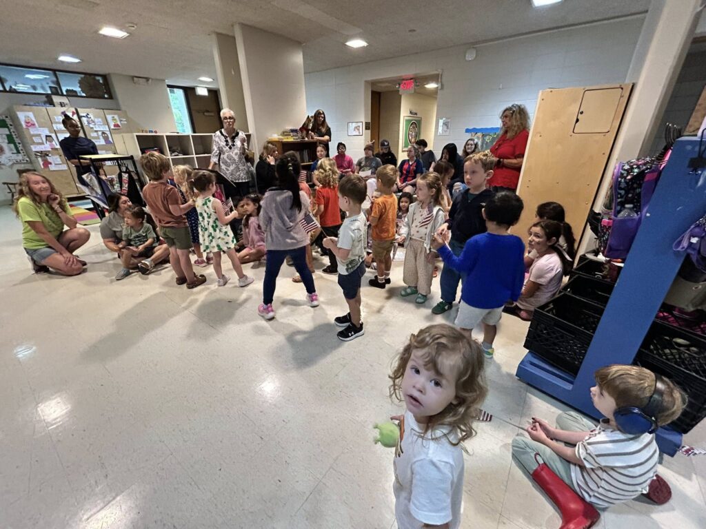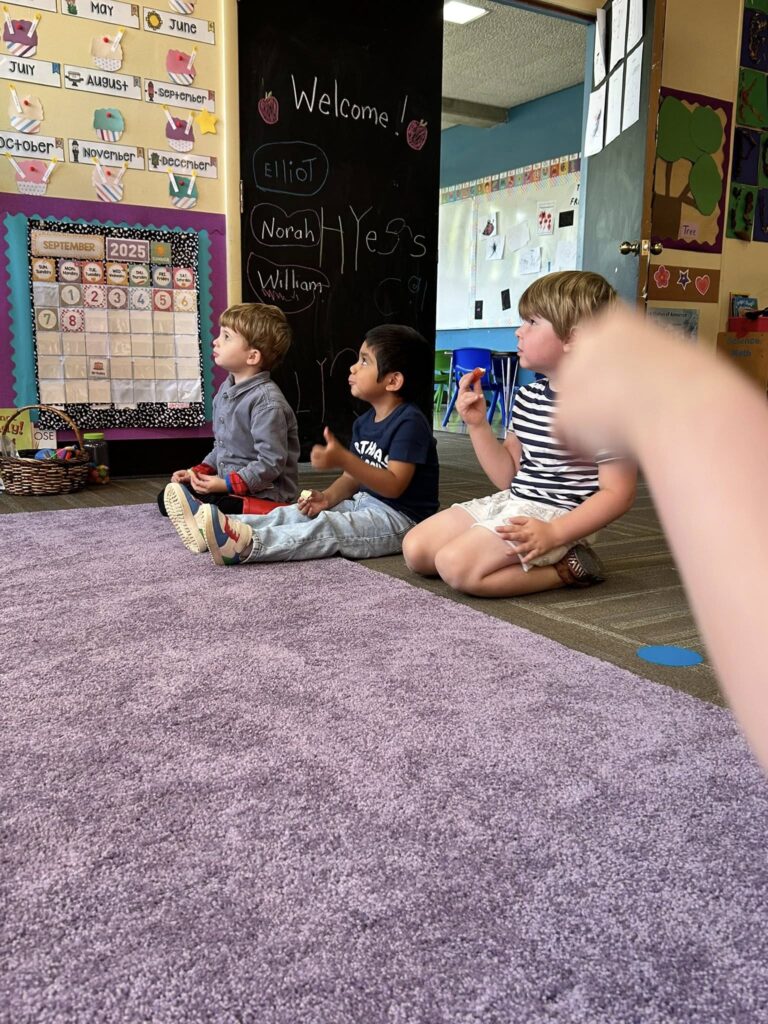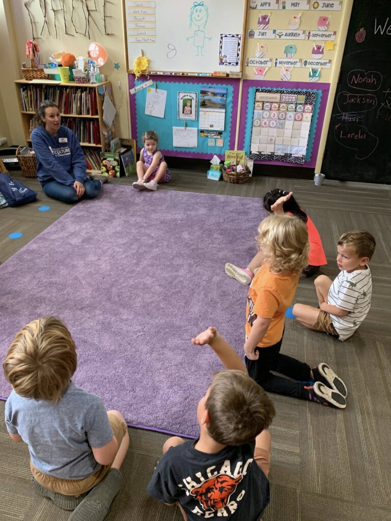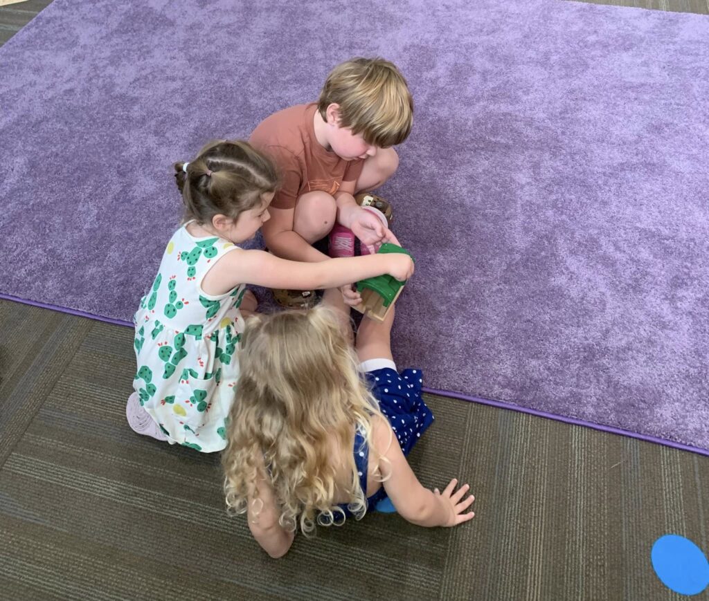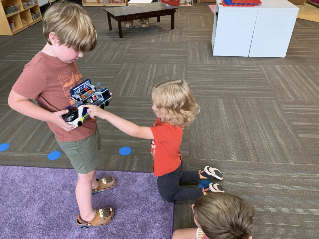 This week in Miss Shelley’s Preschool class: Emmy shared her book about bees, a stuffy, and a special pillow, Nora shared her birdy, Toby, and a family picture, and Elliot shared his police truck, police cube, and train tunnel!