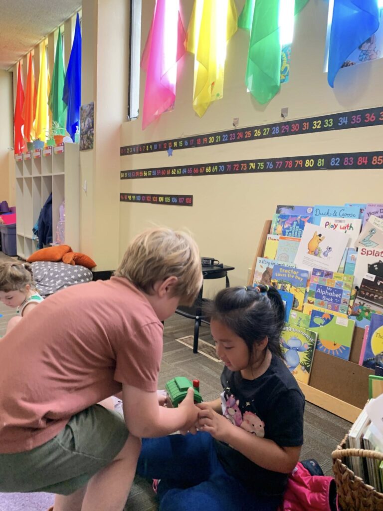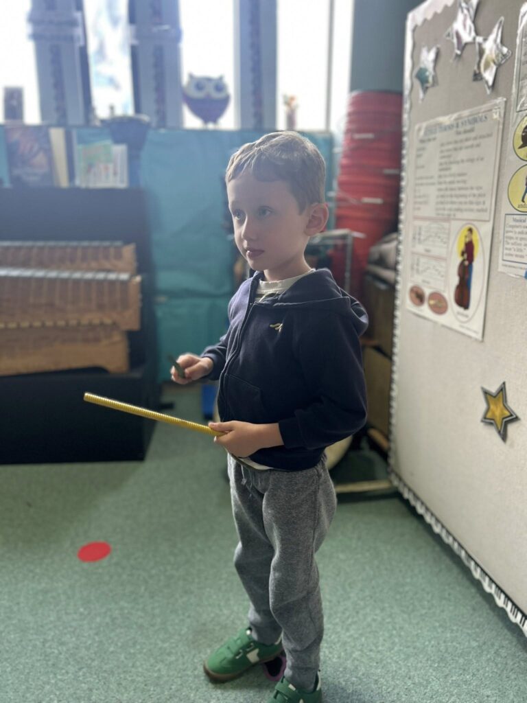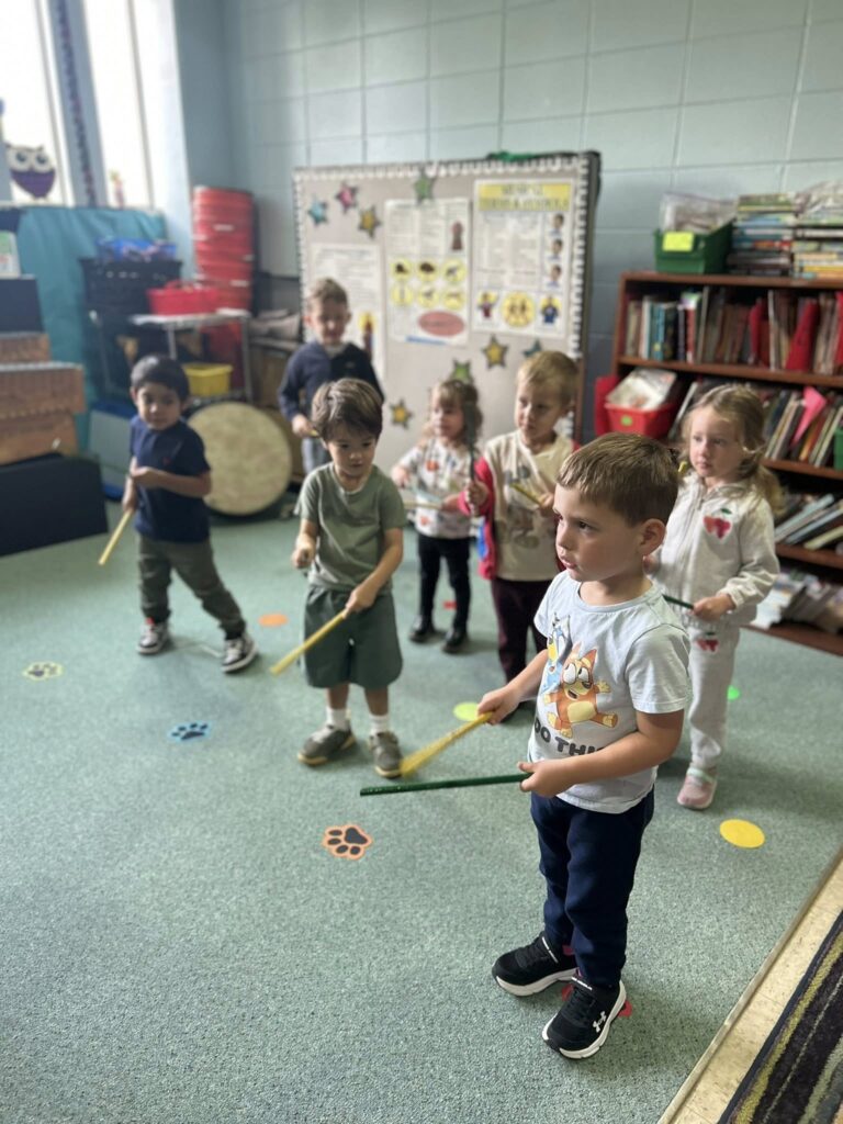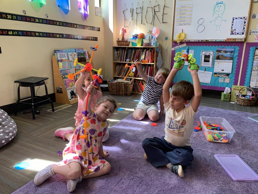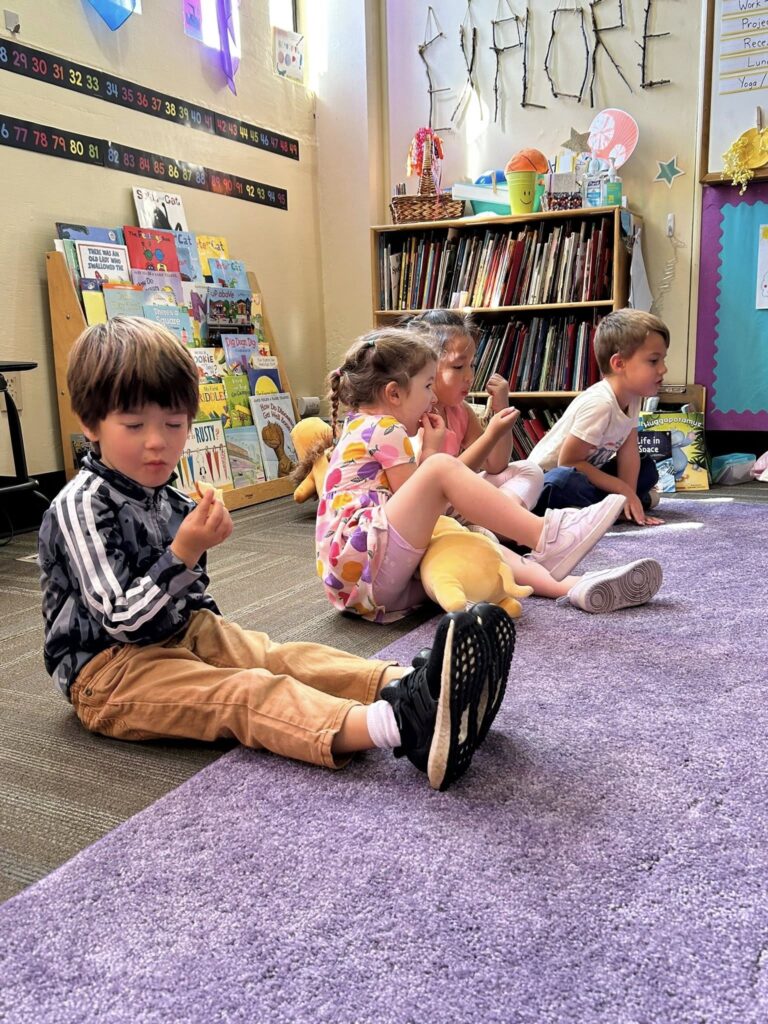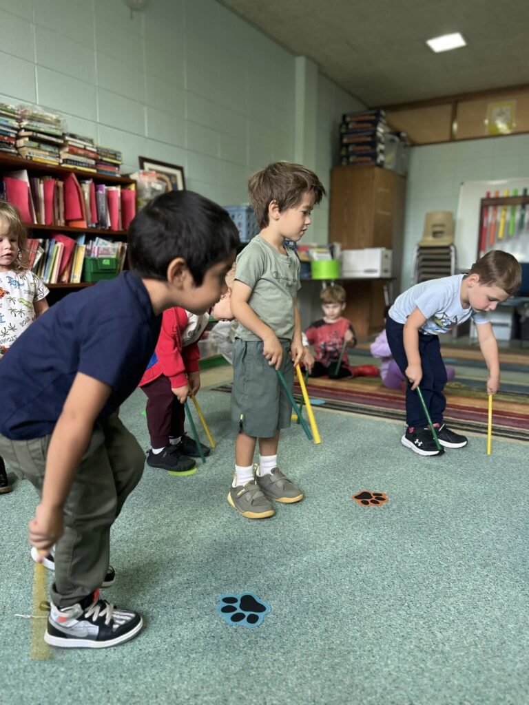 This week in Miss Shelley’s Preschool class: Emmy shared her book about bees, a stuffy, and a special pillow, Nora shared her birdy, Toby, and a family picture, and Elliot shared his police truck, police cube, and train tunnel!