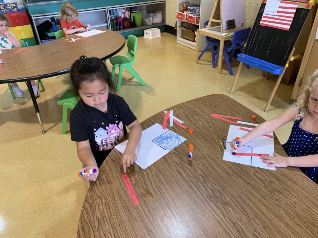 We have been singing song about the flag of America in Music, so in Preschool on Thursday, we made a flag! How many stripes and stars are on the American flag?