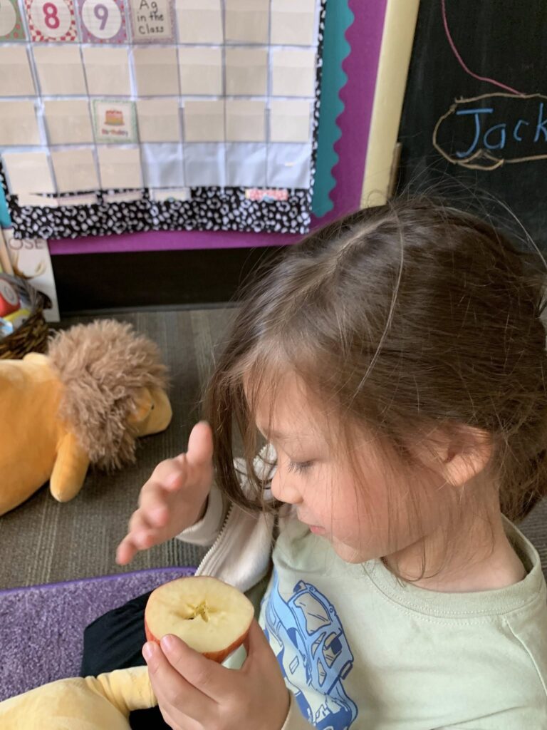 When you cut an apple horizontally what will you find inside? A star! Just like how Emmy is posing!