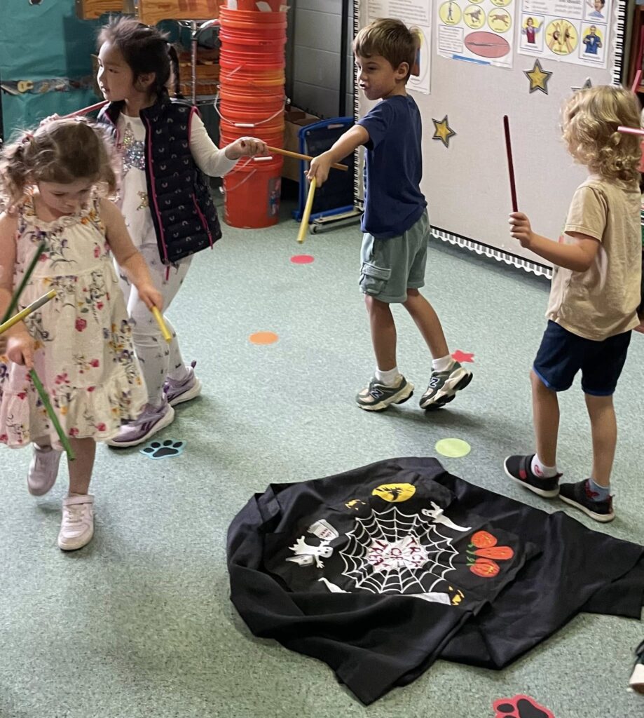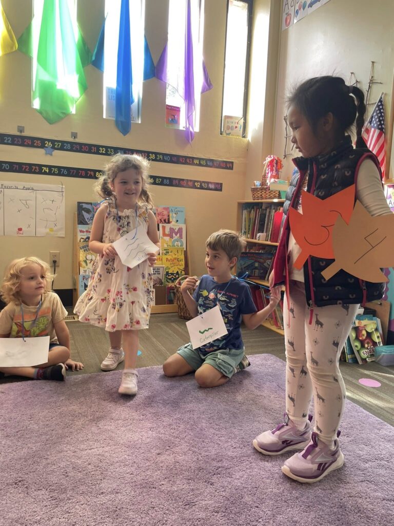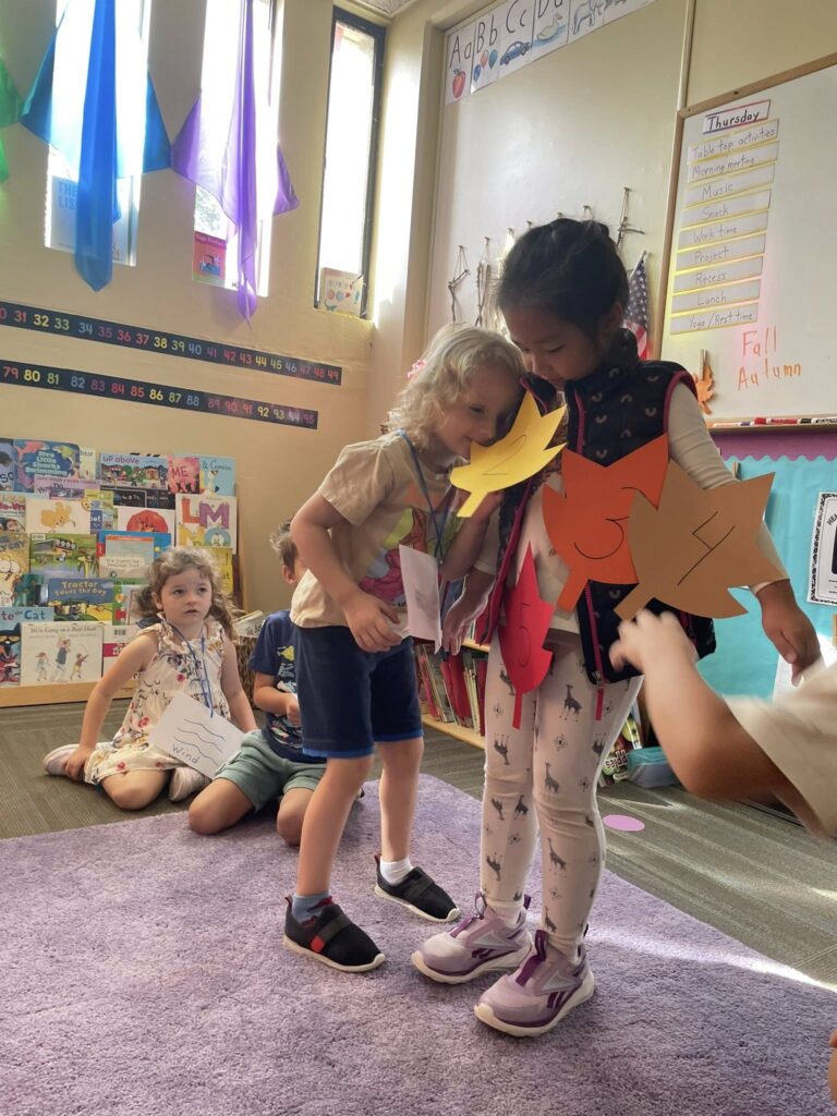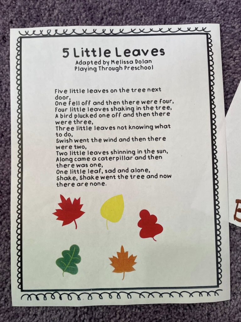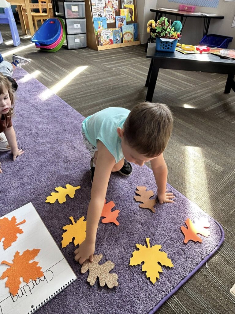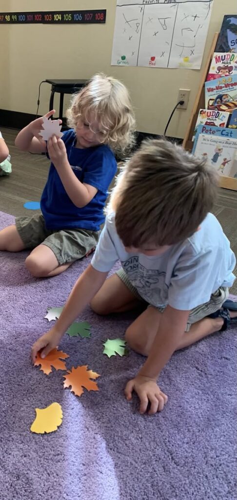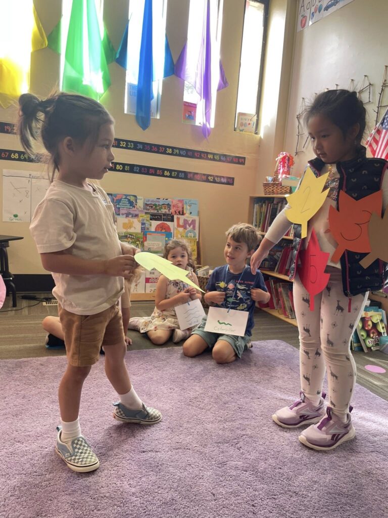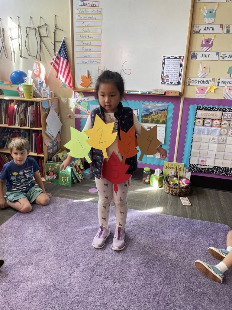 On Thursday morning, Preschool acted out 5 Little Leaves while also learning some Math!