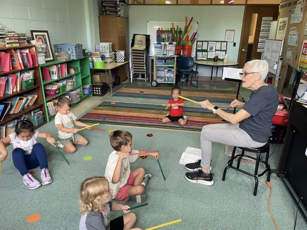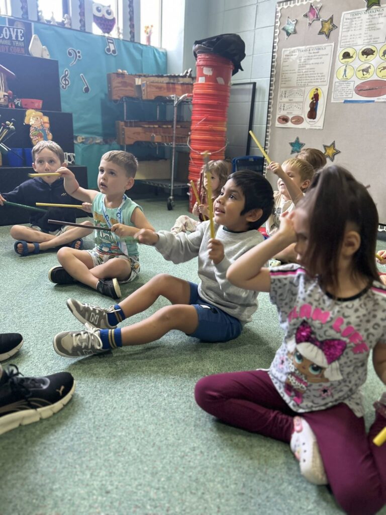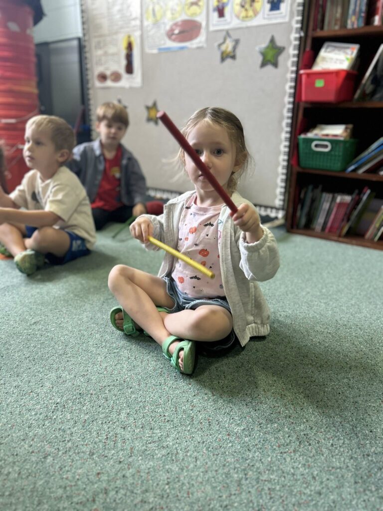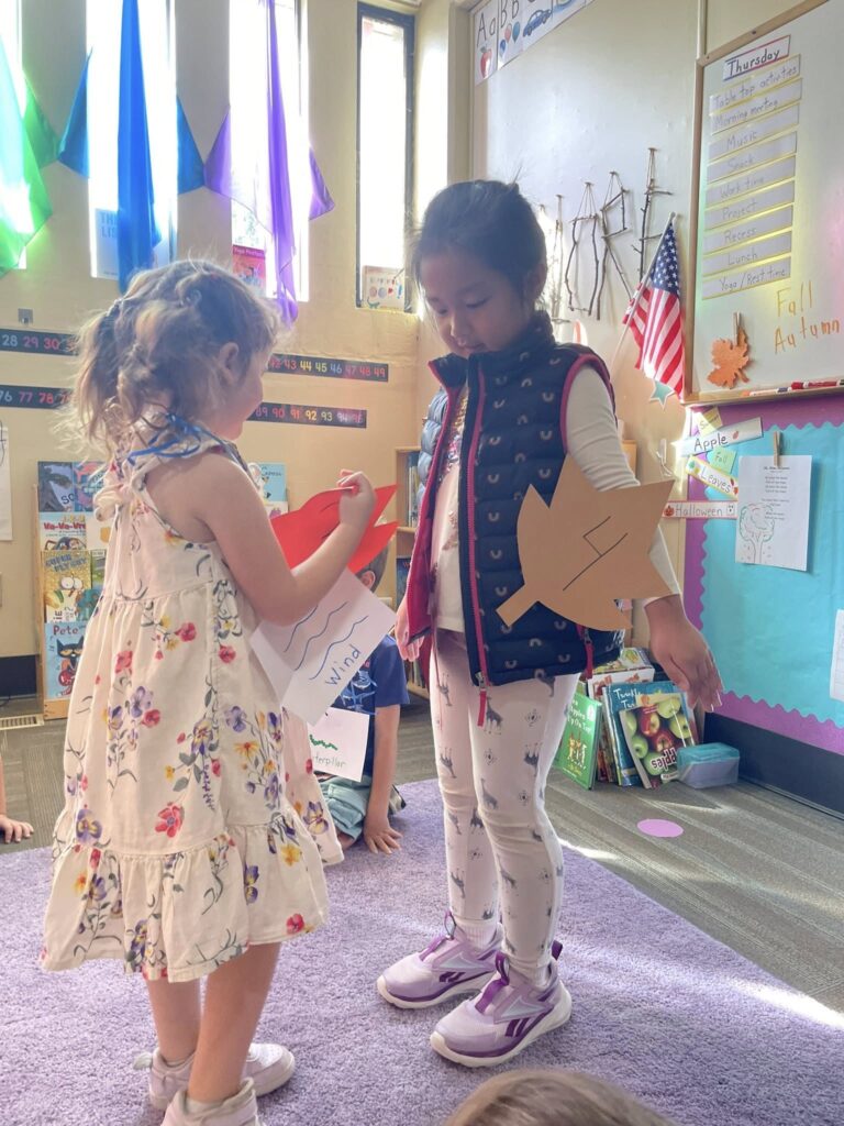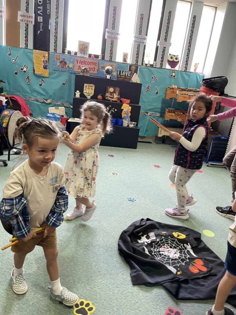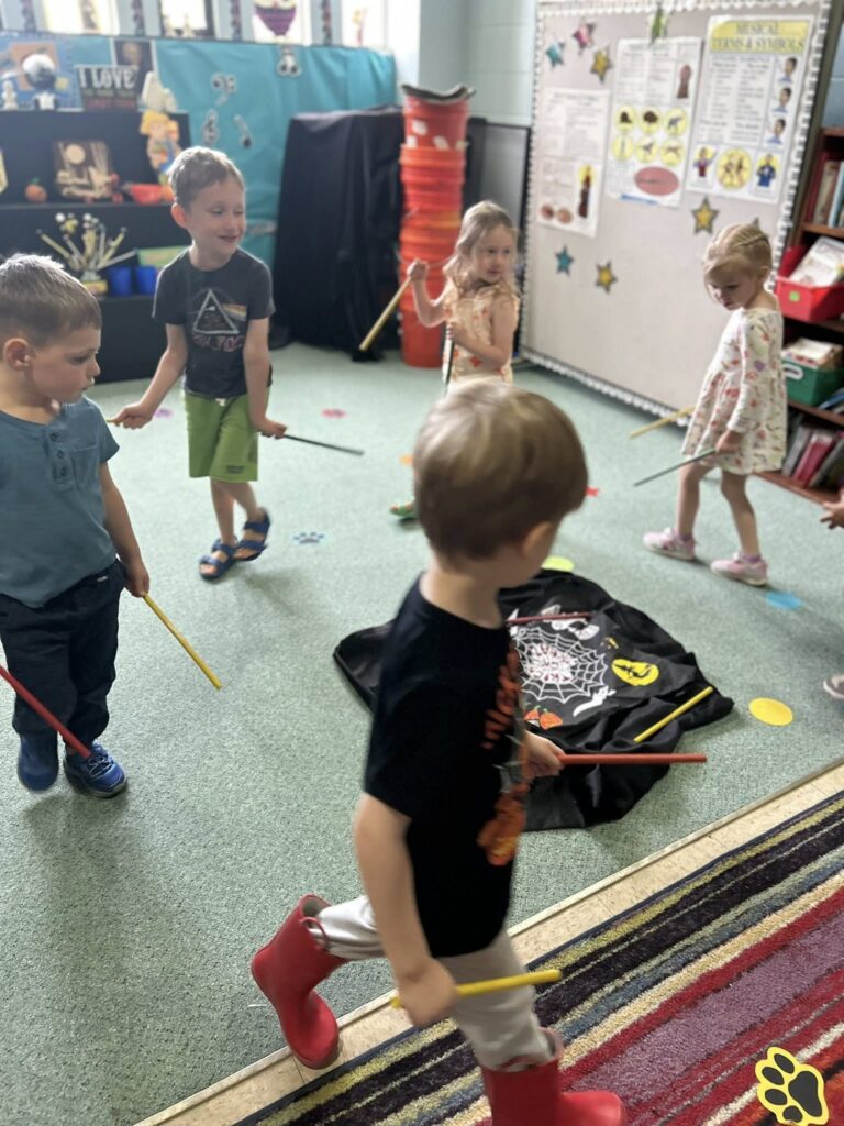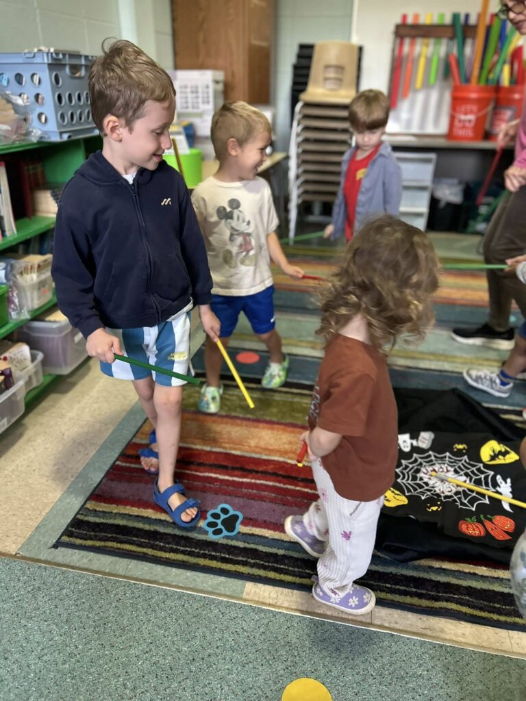 On Thursday morning, Preschool acted out 5 Little Leaves while also learning some Math!
