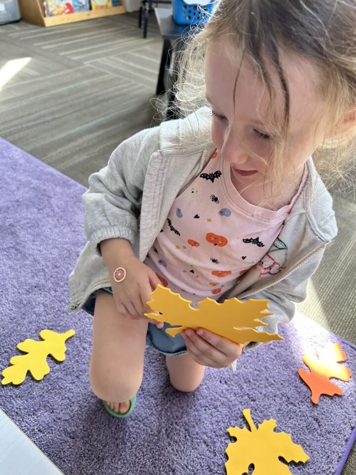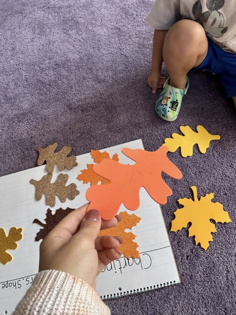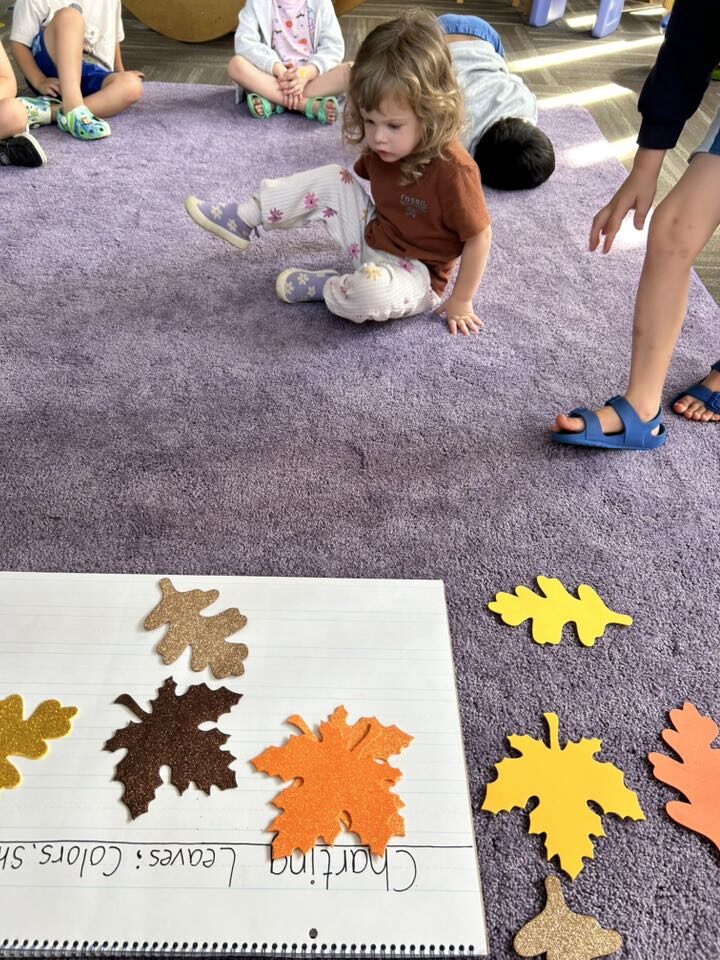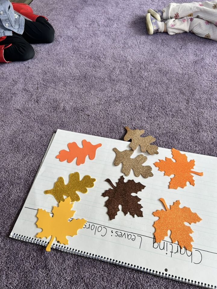 The leaves are falling off the trees! What colors will we see? On Tuesday, we sorted leaves by color and then talked about what we saw. Ask your Preschooler and see what they say!