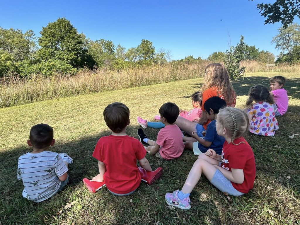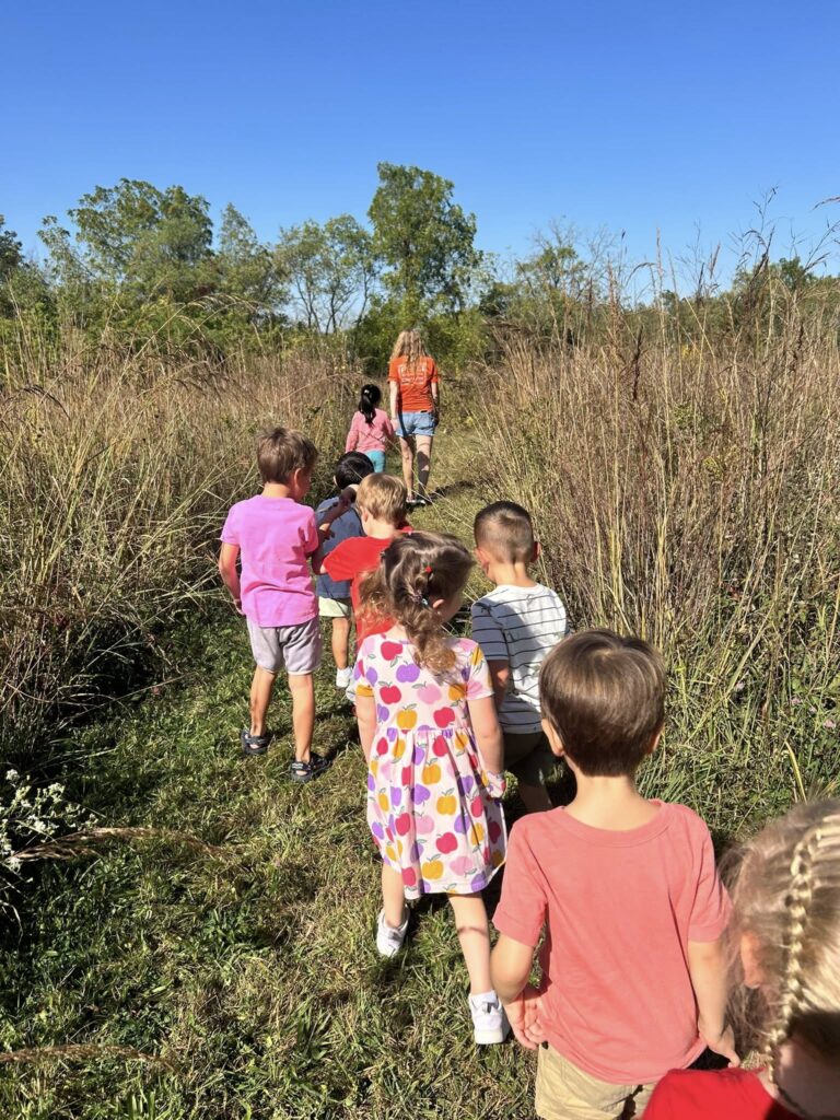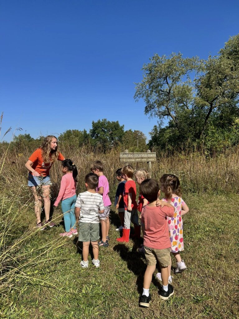 Preschool took a trip to see the prairie on Monday morning before going to play at recess! We heard some birds, saw the wind move the prairie, and then saw some birds!