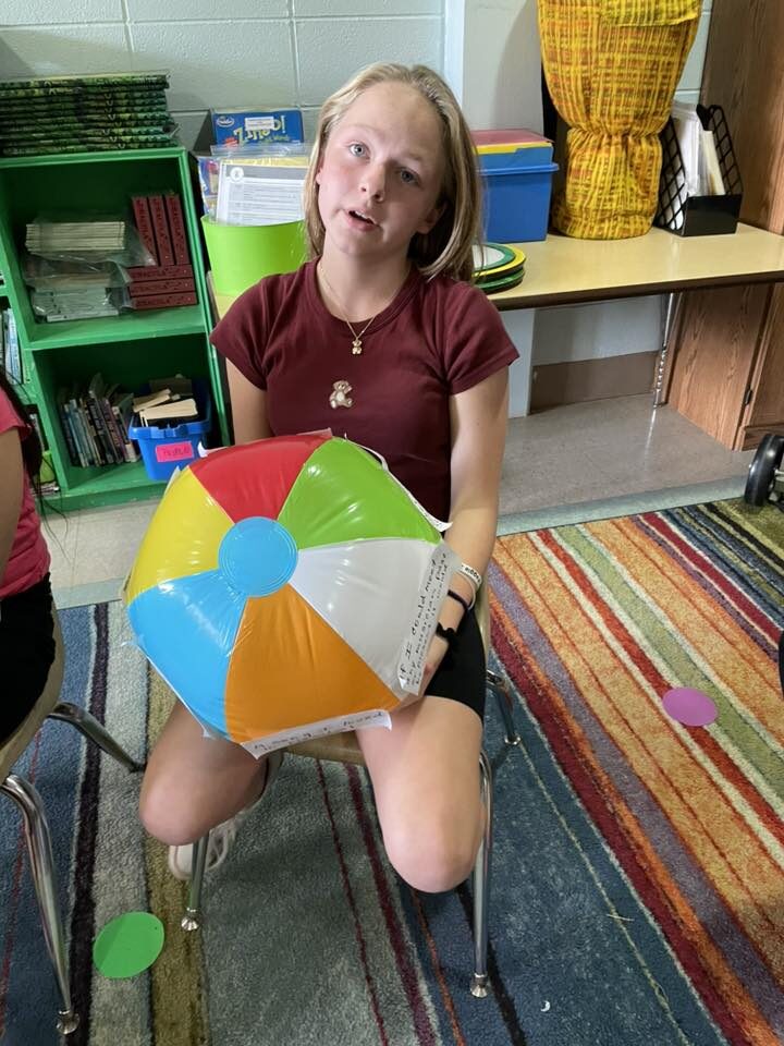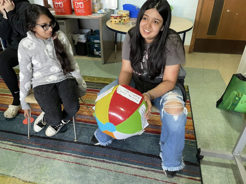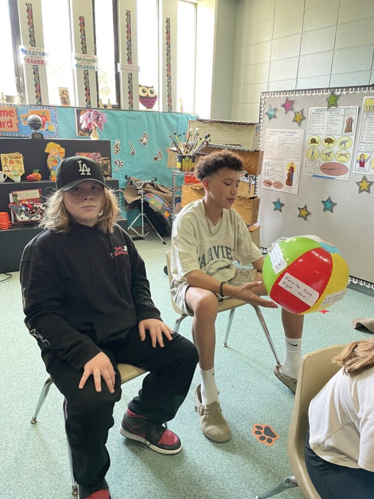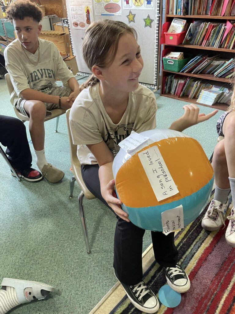 Using a beach ball to ask Upper School students questions about their musical experiences!