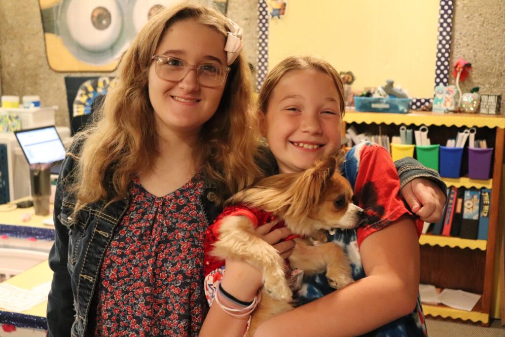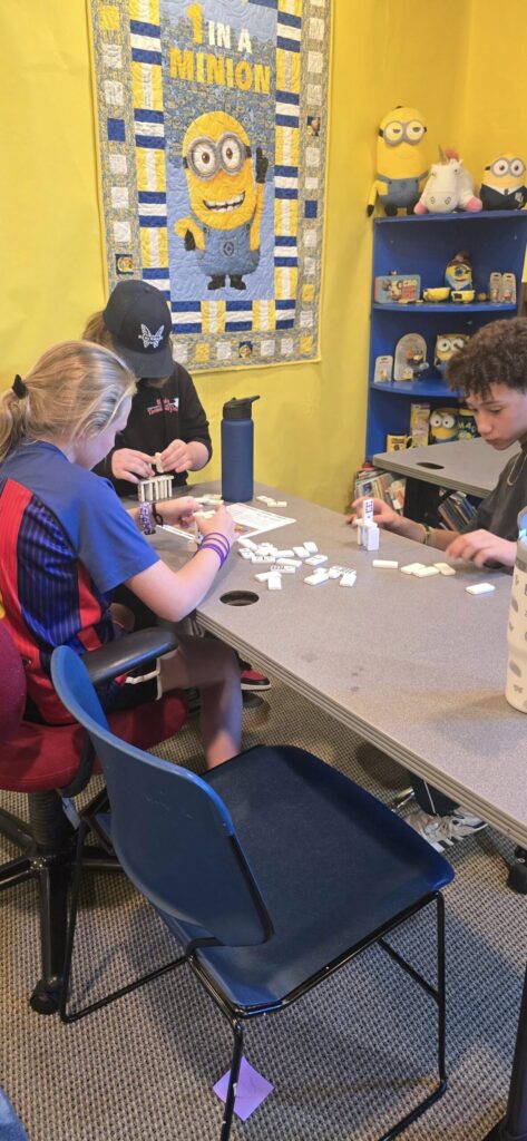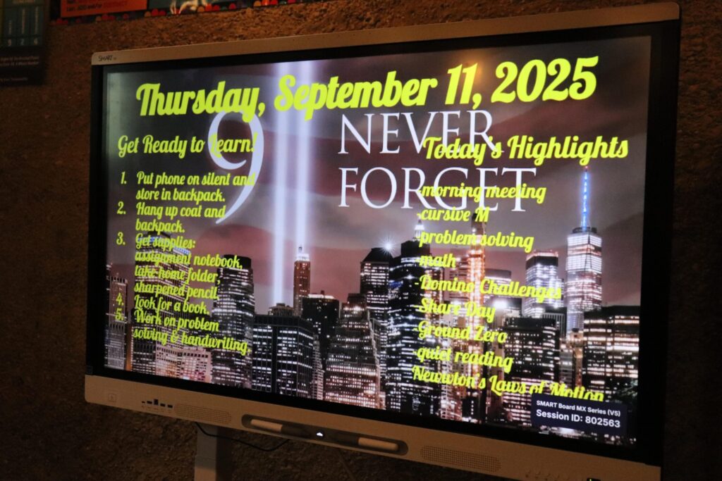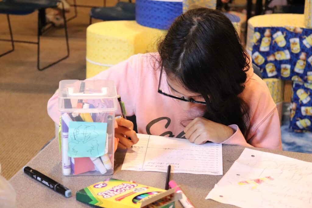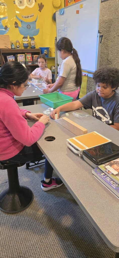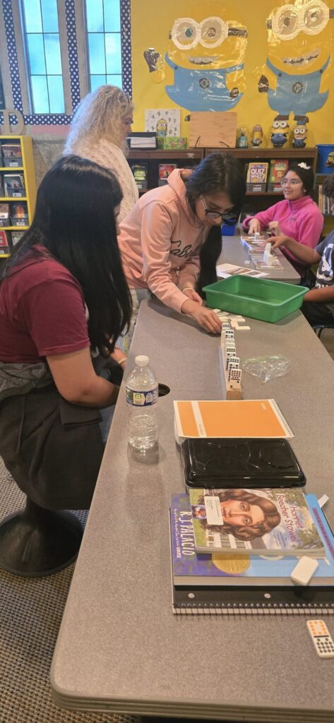 Sweet interaction between Early and Upper students, coming together to work on Patriot’s Day books!